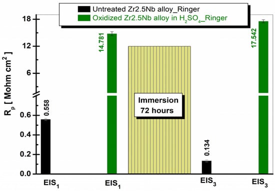 | Rp [MΩ cm2] | 0.5581 / 0.1342 | 16.82 × 10−6 / 3.375 × 10−6 |