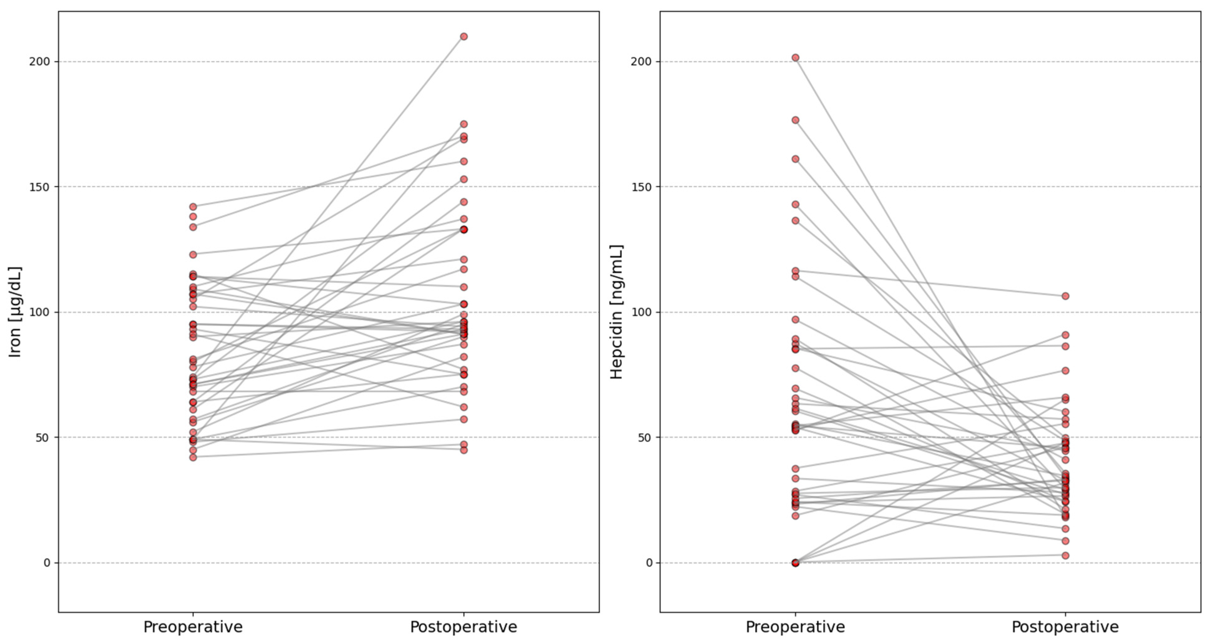 Kupczyk, W.; Boinska, J.; Słomka, A.; Kupczyk, K.; Jackowski, M.; Żekanowska, E. Estimation of New Regulators of Iron Metabolism in Short-Term Follow-Up After Bariatric Surgery. Int. J. Mol. Sci. 2025, 26, 10543. https://doi.org/10.3390/ijms262110543