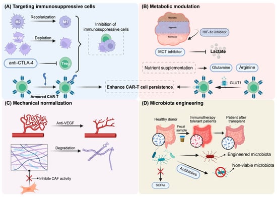 In addition to the restriction of TIME on the survival ability of CAR T-cells in solid tumors, the metabolic microenvironment also inhibits their substrate utilization through nutrient competition, thus impairing CAR T-cell proliferation, IFN-γ secretion, and cytotoxicity [68,94,95].