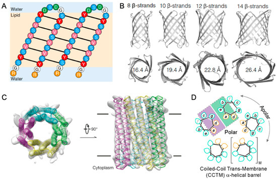 - Wimley, W.C. The versatile β-barrel membrane protein. Curr. Opin. Struct. Biol. 2003, 13, 404–411. [Google Scholar] [CrossRef]