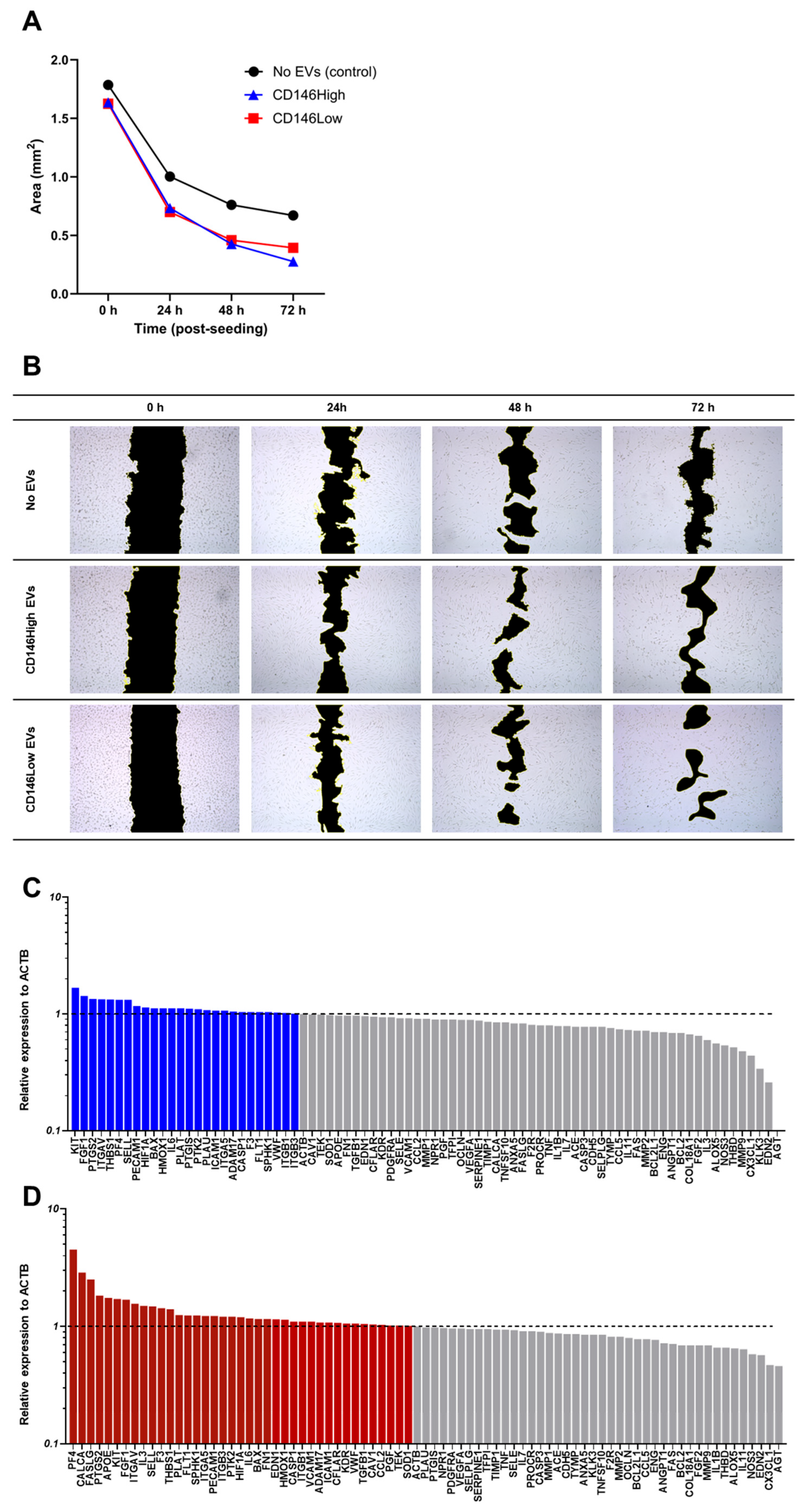 2.4. CD146High and CD146Low eMSC-EVs Effect on Endothelial Cells Under Inflammatory Conditions In Vitro
