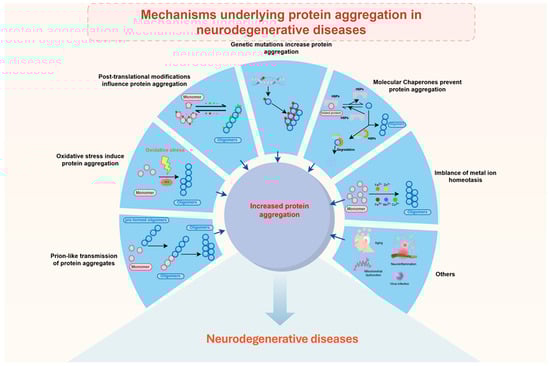 The mechanisms of protein aggregation in neurodegenerative diseases are multifaceted and involve a complex interplay of molecular processes that contribute to the pathogenesis of these disorders (Figure 2).