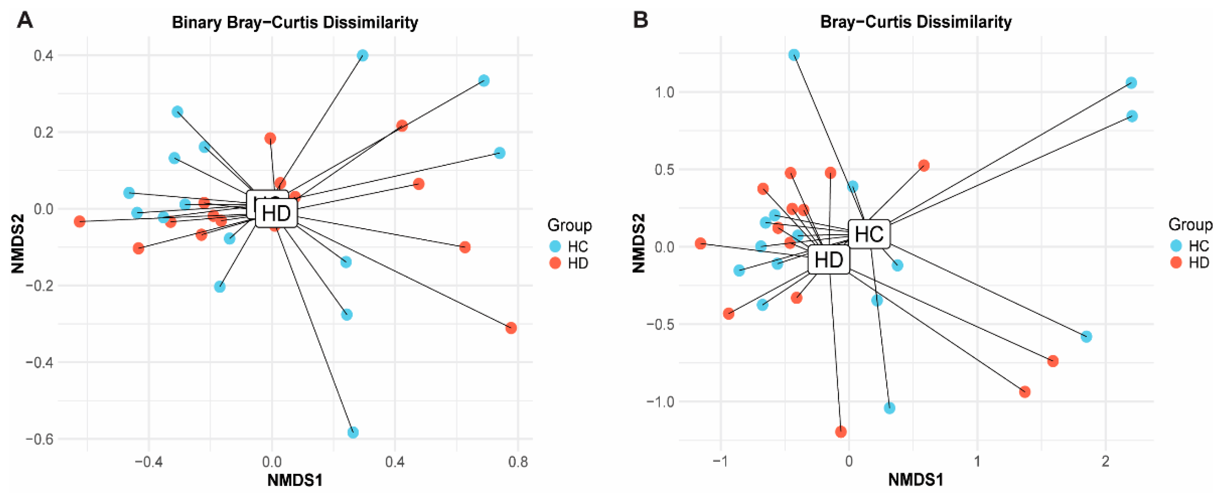 2.3. Bacterial Composition of the Gut Microbiota in Paediatric HD Is Unchanged at All Taxonomic Levels