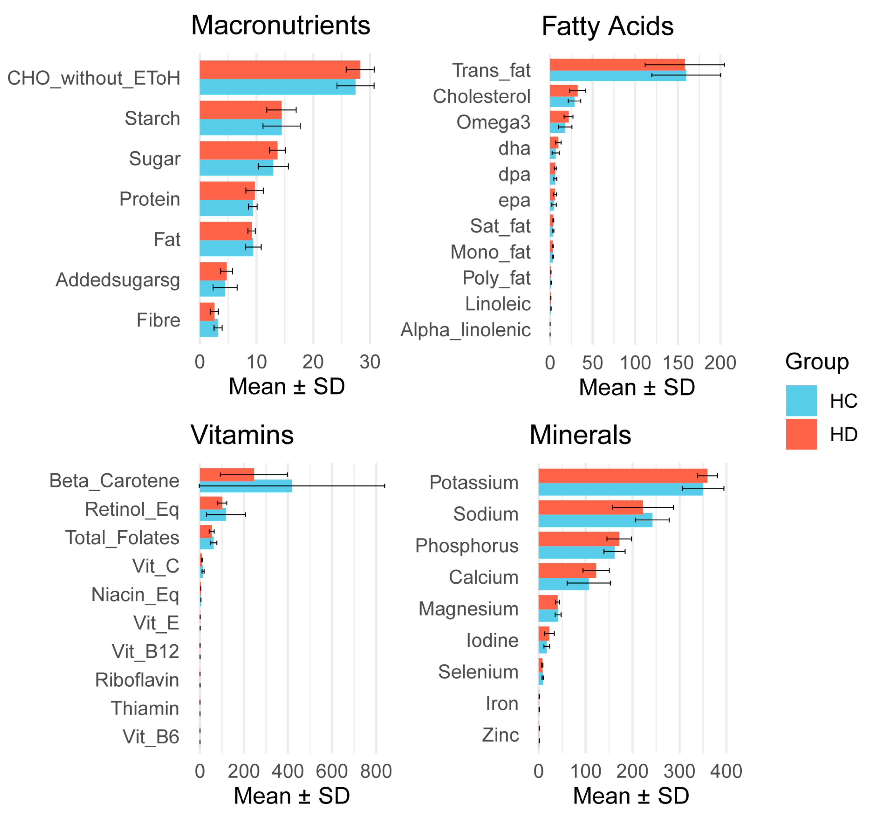 2.7. Dietary Intake Does Not Differ Between Children with HD and Controls and Is Not Associated with Gastrointestinal Inflammation or Bacterial Abundance
