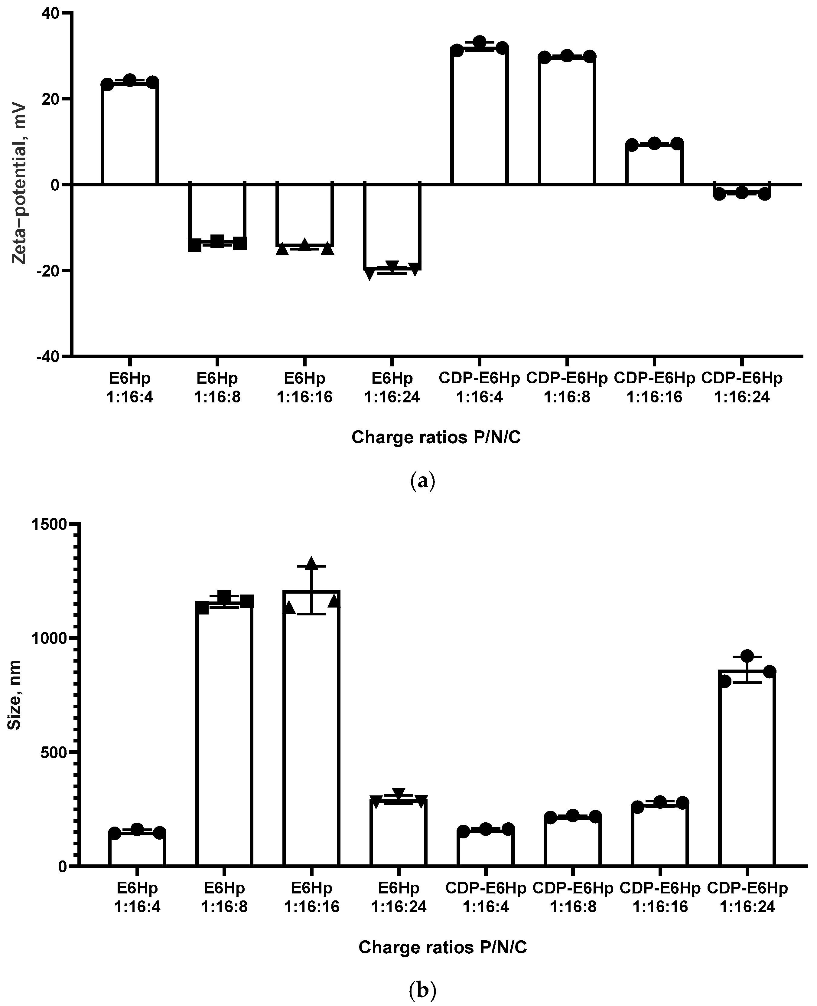 2.3. Size and Zeta-Potential of Ternary Polyplexes