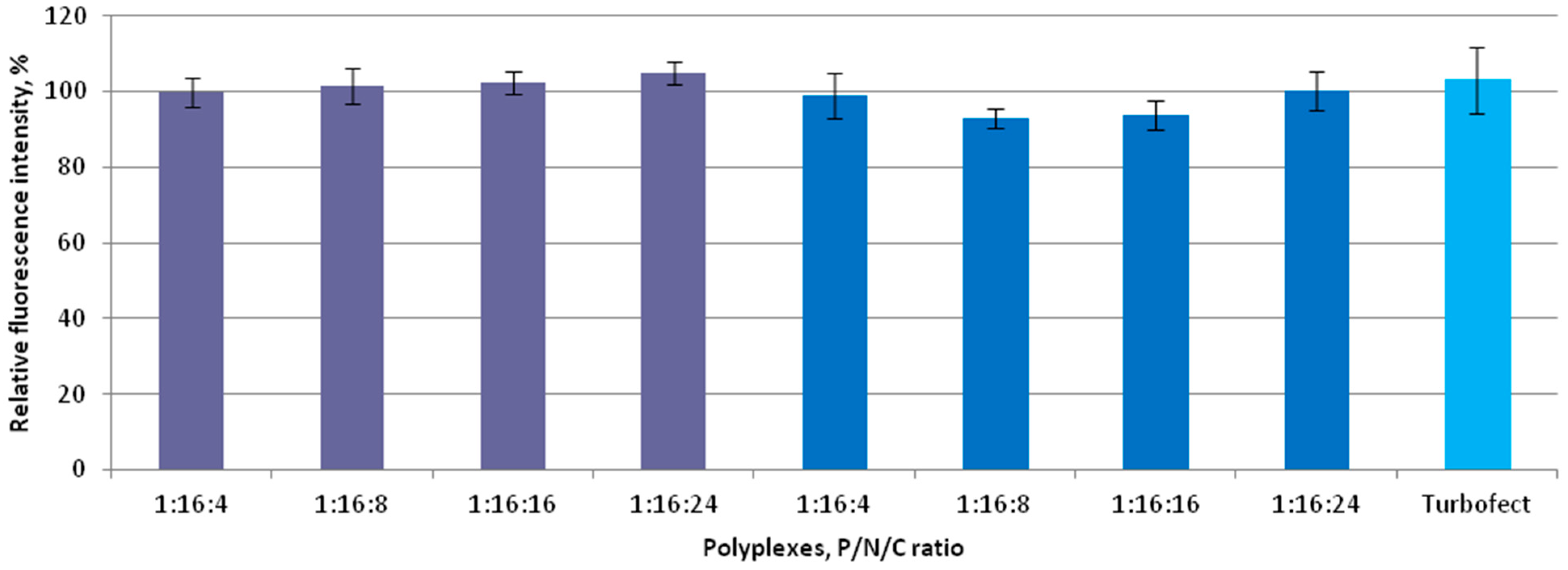 2.5. Evaluation of the Trasnsfection Properties of Ternary Polyplexes In Vitro