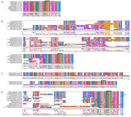 - Waterhouse, A.M.; Procter, J.B.; Martin, D.M.A.; Clamp, M.; Barton, G.J. Jalview Version 2—A multiple sequence alignment editor and analysis workbench. Bioinformatics 2009, 25, 1189–1191. [Google Scholar] [CrossRef]