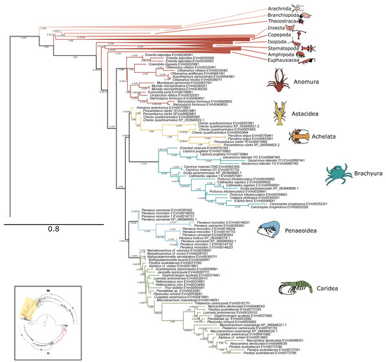 - Pérez-Moreno, J.L.; Kozma, M.T.; DeLeo, D.M.; Bracken-Grisson, H.D.; Durica, D.S.; Mykles, D.L. CrusTome: A transcriptome database resource for large-scale analyses across Crustacea. G3-Genes Genomes Genet. 2023, 13, jkad098. [Google Scholar] [CrossRef]