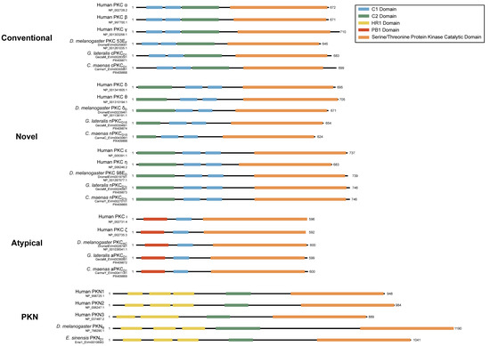 - Garcia-Concejo, A.; Larhammar, D. Protein kinase C family evolution in jawed vertebrates. Dev. Biol. 2021, 479, 77–90. [Google Scholar] [CrossRef] [PubMed]