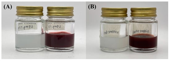 Stability of the niosome formulation during heating–cooling storage. (A) Niosome blank (N3) and niosome entrap 1%PWCC extract (N5) before storage, and (B) niosome blank and niosome entrap 1%PWCC extract after storage.
