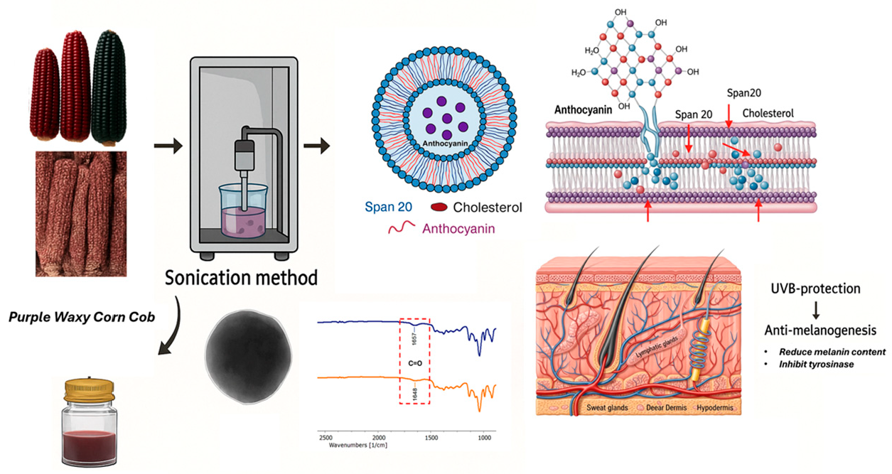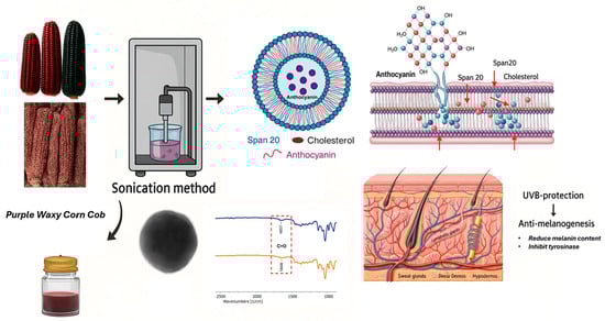 Thongphachanh, I.; Kanpipit, N.; Thapphasaraphong, S. Development of Niosome-Entrapped Purple Waxy Corn Cobs (Zea mays L.) Extracts to Enhance UVB-Protection and Anti-Melanogenesis Activities. Int. J. Mol. Sci. 2025, 26, 10586. https://doi.org/10.3390/ijms262110586