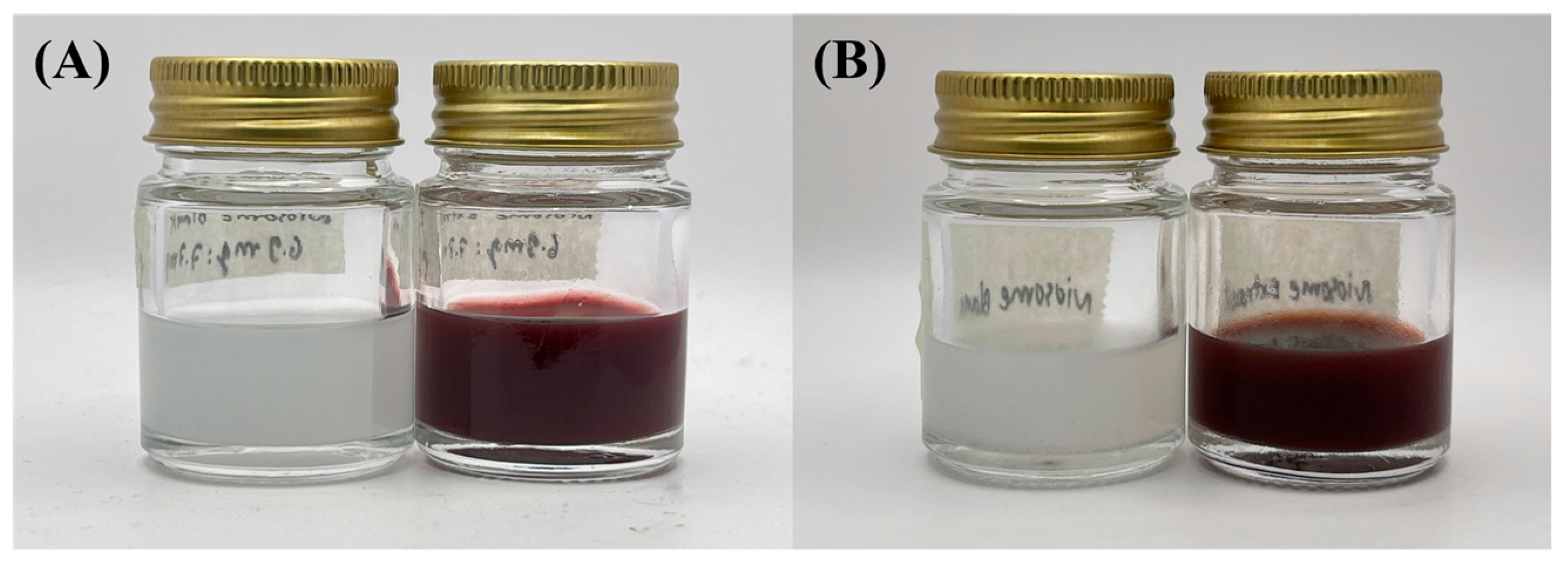 - Silva, H.R.D.; Assis, D.D.C.D.; Prada, A.L.; Silva, J.O.C.; Sousa, M.B.D.; Ferreira, A.M.; Amado, J.R.R.; Carvalho, H.D.O.; Santos, A.V.T.D.L.T.D.; Carvalho, J.C.T. Obtaining and Characterization of Anthocyanins from Euterpe oleracea (Açaí) Dry Extract for Nutraceutical and Food Preparations. Rev. Bras. Farmacogn. 2019, 29, 677–685. [Google Scholar] [CrossRef]