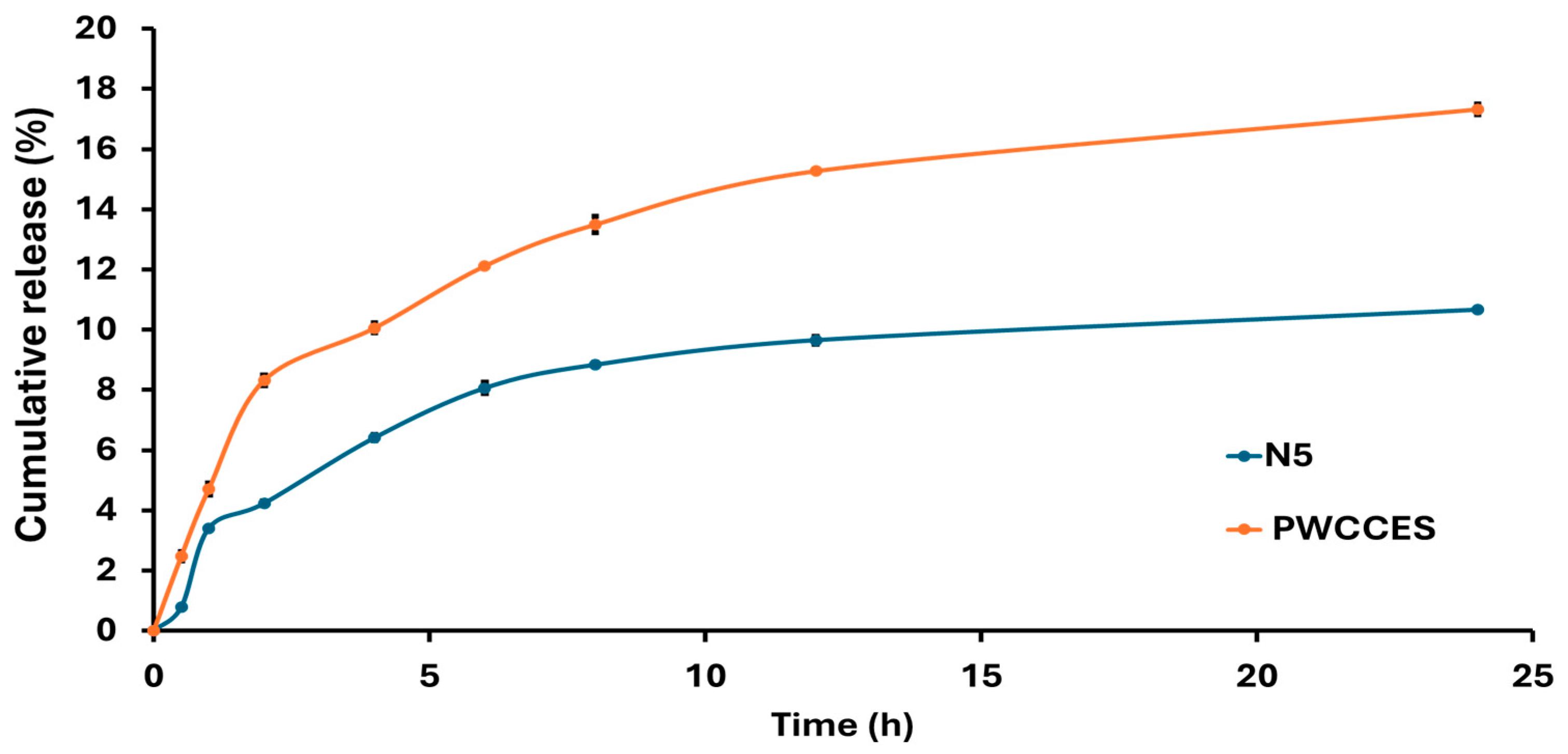 4.4.1. Percent Entrapment Efficiency (%EE)
