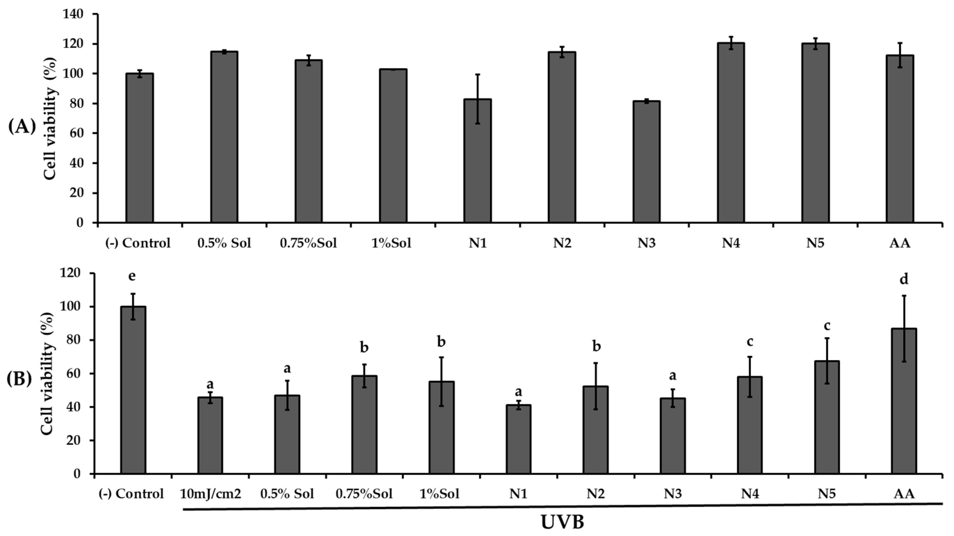 4.5.3. Effective UVB Protection for HaCaT Cells