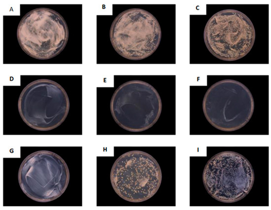 The antibacterial activity of CeO2-Oct (A–C), CeO2-Rod (D–F), and CeO2-Cube (G–I) at different concentrations.
