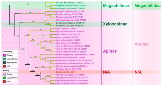 All data are included in this paper. Complete mitochondrial genomes assembled and annotated in the present study are available on the NCBI GenBank Database. Accession numbers are as follow: Apis andreniformis [NC039709], Apis dorsata [NC037709], Apis florea [NC021401], Apis laboriosa [NC036155], Apis mellifera carnica [NC061380], Apis mellifera ligustica [NC001566], Apis mellifera sahariensis [NC035833], Apis nigrocincta [NC038114], Apis nuluensis [NC036235], Bombus canariensis [NC079568], Bombus hypocrita sapporensis [NC011923], Bombus terrestris lusitanicus [NC045178], Bombus terrestris terrestris [NC045179], Lepidotrigona flavibasis [MN747147], Lepidotrigona terminata [MN737481], Melipona bicolor [AF466146], Tetragonisca angustula [OR030859], Tetragonula iridipennis [NC081039], Tetragonula pagdeni [NC066054], Ceratina okinawana [NC057193], Ceratina smaragdula [NC064404], Tetrapedia diversipes [NC060989], Melecta chinensis [NC077570], Thyreus decorus [NC057192], Amegilla calceifera [NC057194], Coelioxys fenestrate [NC056369], Megachile sculpturalis [KT223644], Euaspis Polynesia [NC056370].
