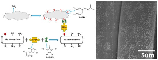 - Milošević, M.; Radoičić, M.; Šaponjić, Z.; Nunney, T.; Marković, D.; Nedeljković, J.; Radetić, M. In situ generation of Ag nanoparticles on polyester fabrics by photoreduction using TiO2 nanoparticles. J. Mater. Sci. 2013, 48, 5447–5455. [Google Scholar] [CrossRef]