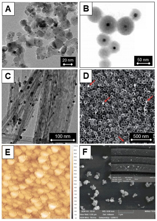 - Wysocka, I.; Kowalska, E.; Ryl, J.; Nowaczyk, G.; Zielińska-Jurek, A. Morphology, Photocatalytic and Antimicrobial Properties of TiO2 Modified with Mono- and Bimetallic Copper, Platinum and Silver Nanoparticles. Nanomaterials 2019, 9, 1129. [Google Scholar] [CrossRef]