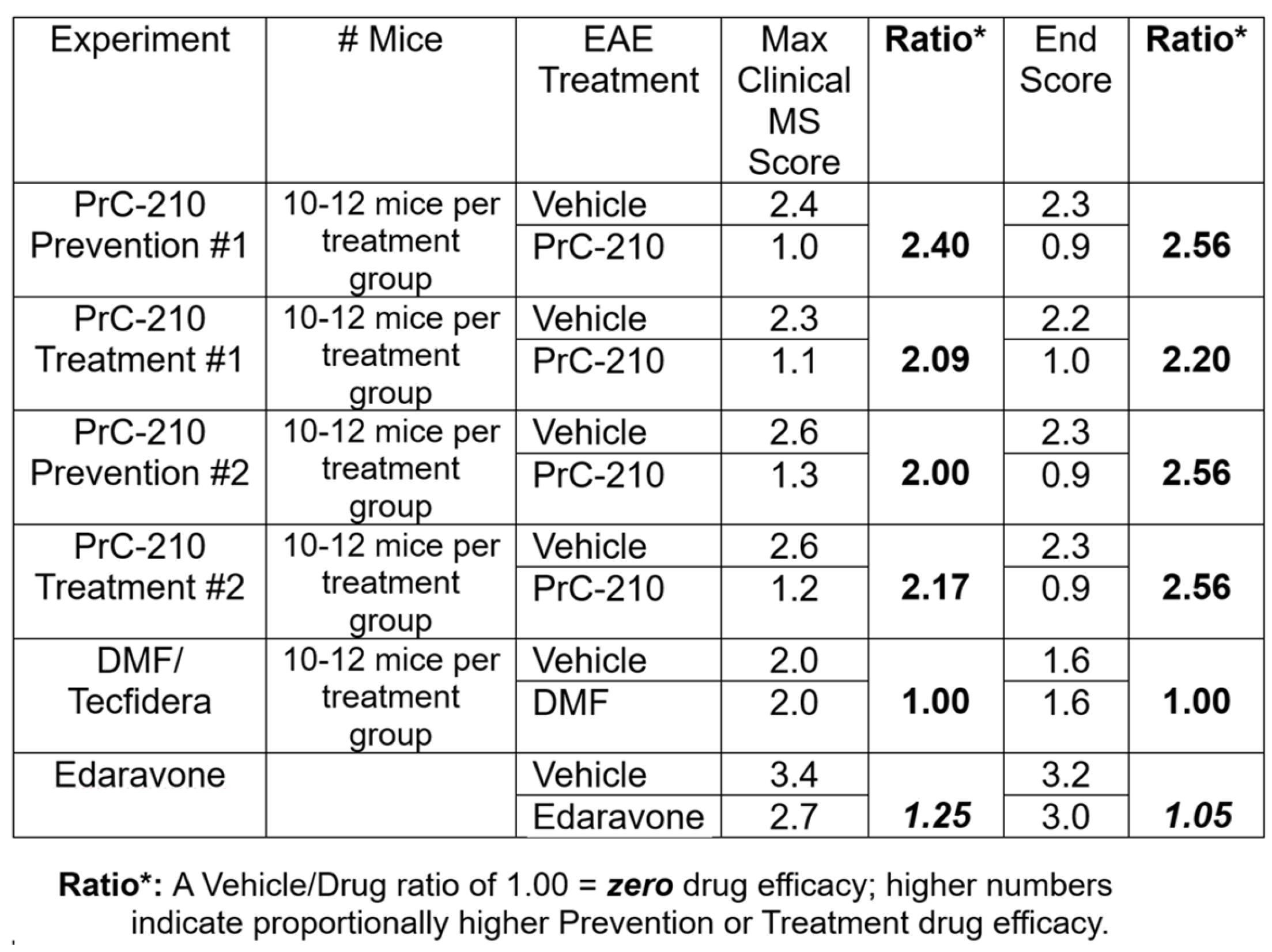 Significant Suppression of Multiple Sclerosis in the Mouse EAE Model Using the PrC-210 Aminothiol