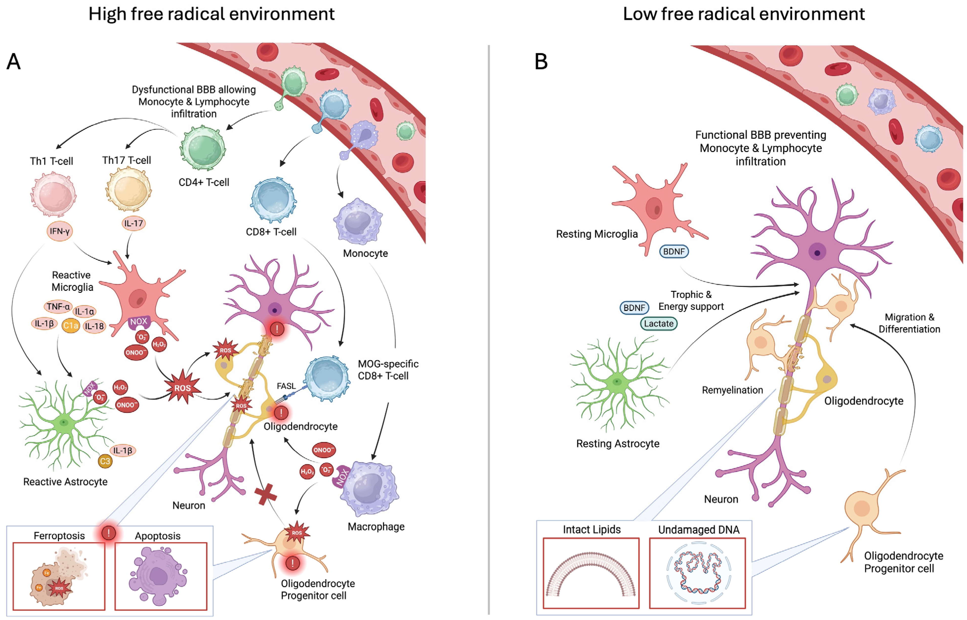 - van Horssen, J.; Witte, M.E.; Schreibelt, G.; de Vries, H.E. Radical Changes in Multiple Sclerosis Pathogenesis. Biochim. Biophys. Acta (BBA)-Mol. Basis Dis. 2011, 1812, 141–150. [Google Scholar] [CrossRef]