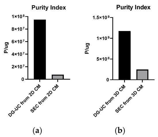 Purity indexes of sEV samples obtained from 2D (a) and 3D cultures (b).