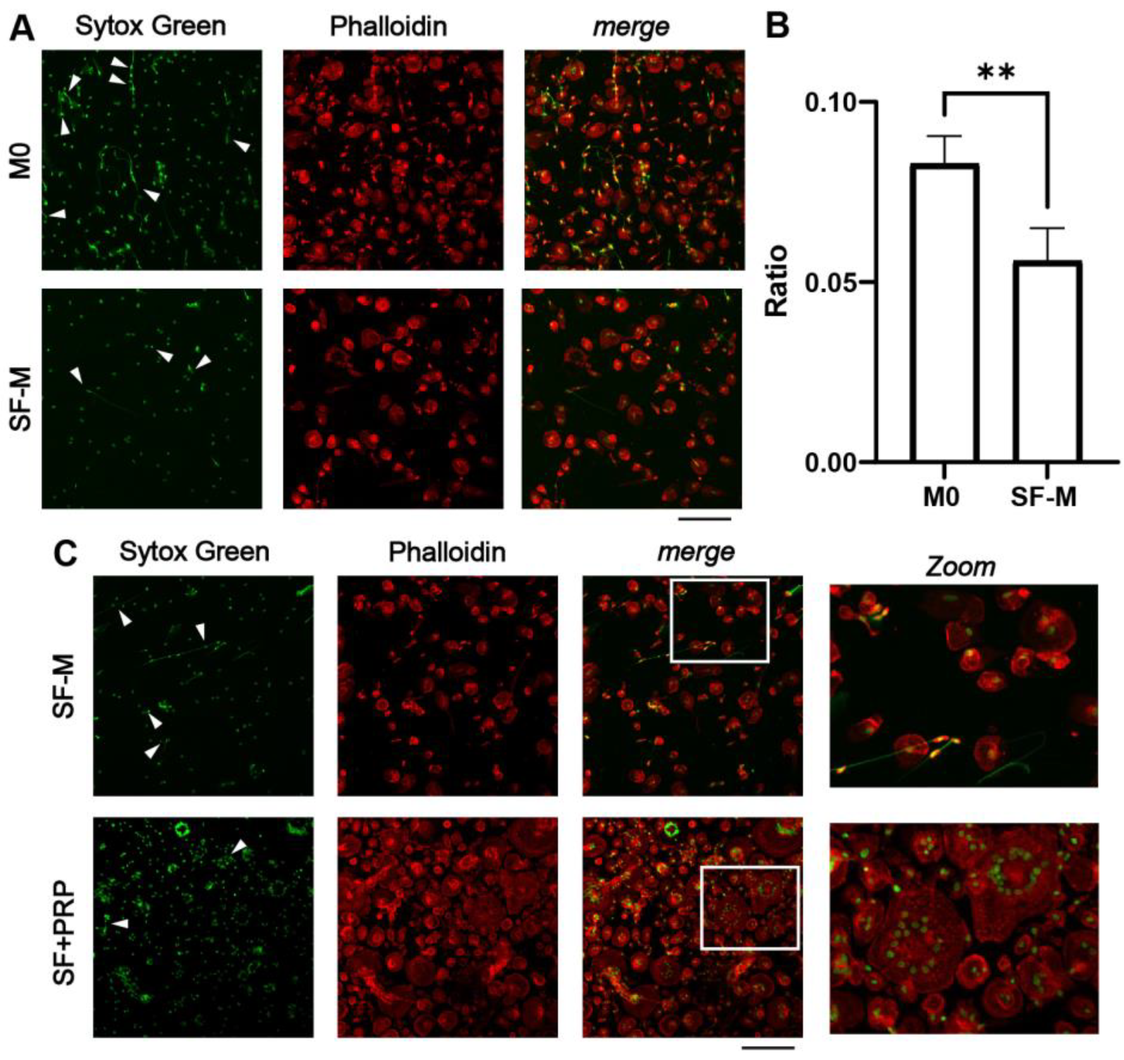 2.6. SF-Ms Treated with PRP Generate Multinuclear Giant Cells When Challenged with NETs