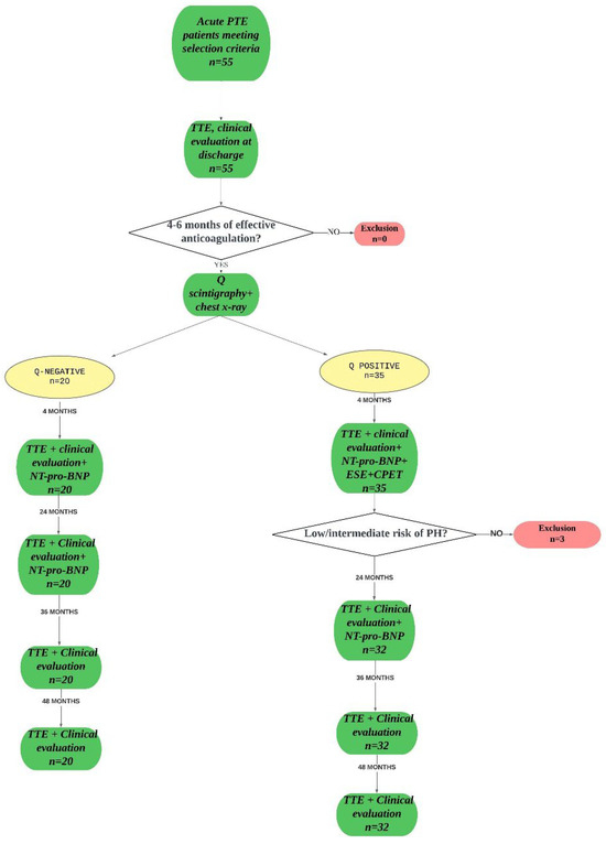 - Madonna, R.; Alberti, M.; Biondi, F.; Morganti, R.; Badagliacca, R.; Vizza, C.D.; De Caterina, R. Chronic thromboembolic pulmonary disease: Association with exercise-induced pulmonary hypertension and right ventricle adaptation over time. Eur. J. Intern. Med. 2024, 123, 120–126. [Google Scholar] [CrossRef]