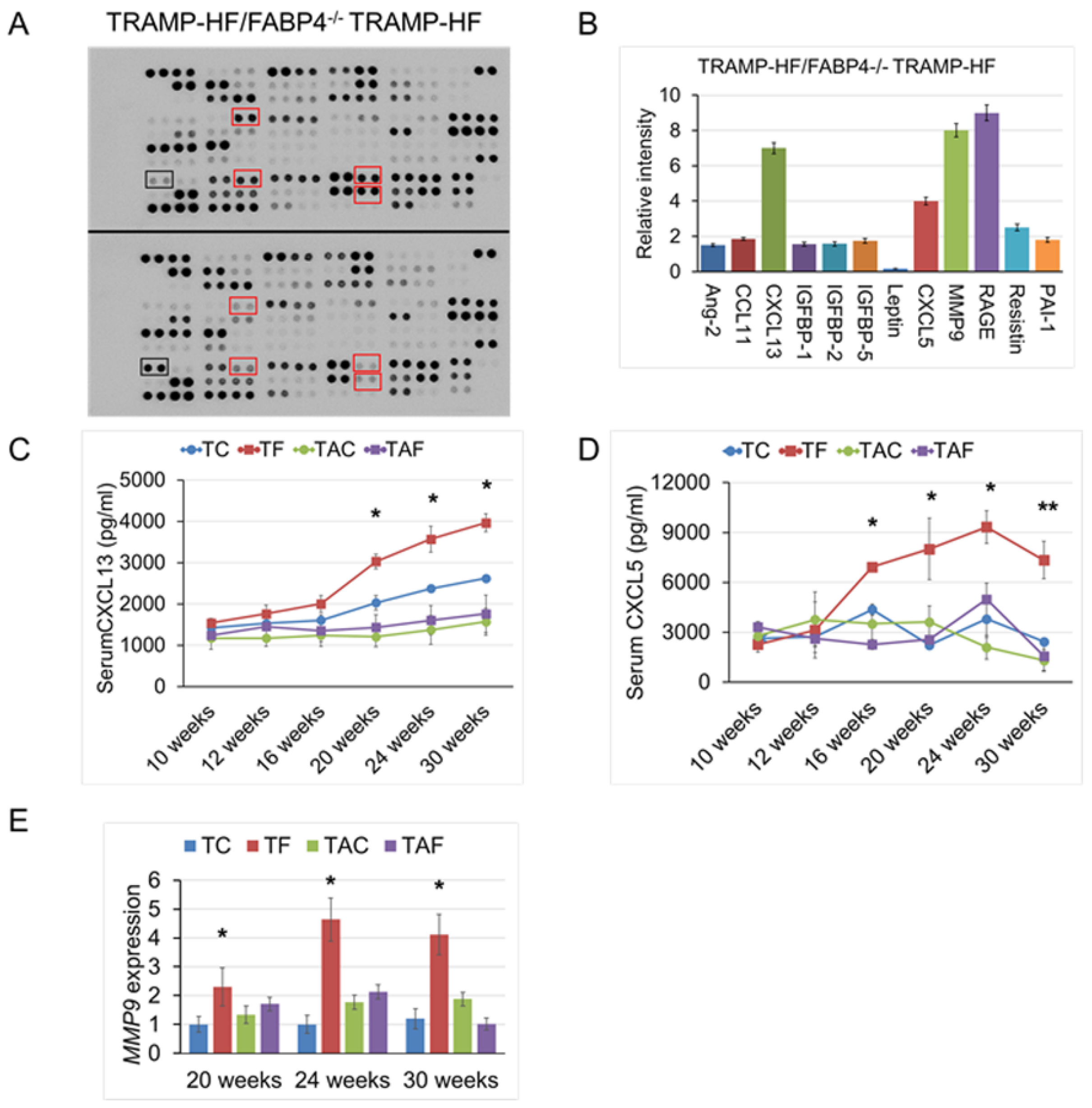 2.4. Loss of FABP4 Decreased Protumorigenic Cytokine Secretion in TRAMP Mice