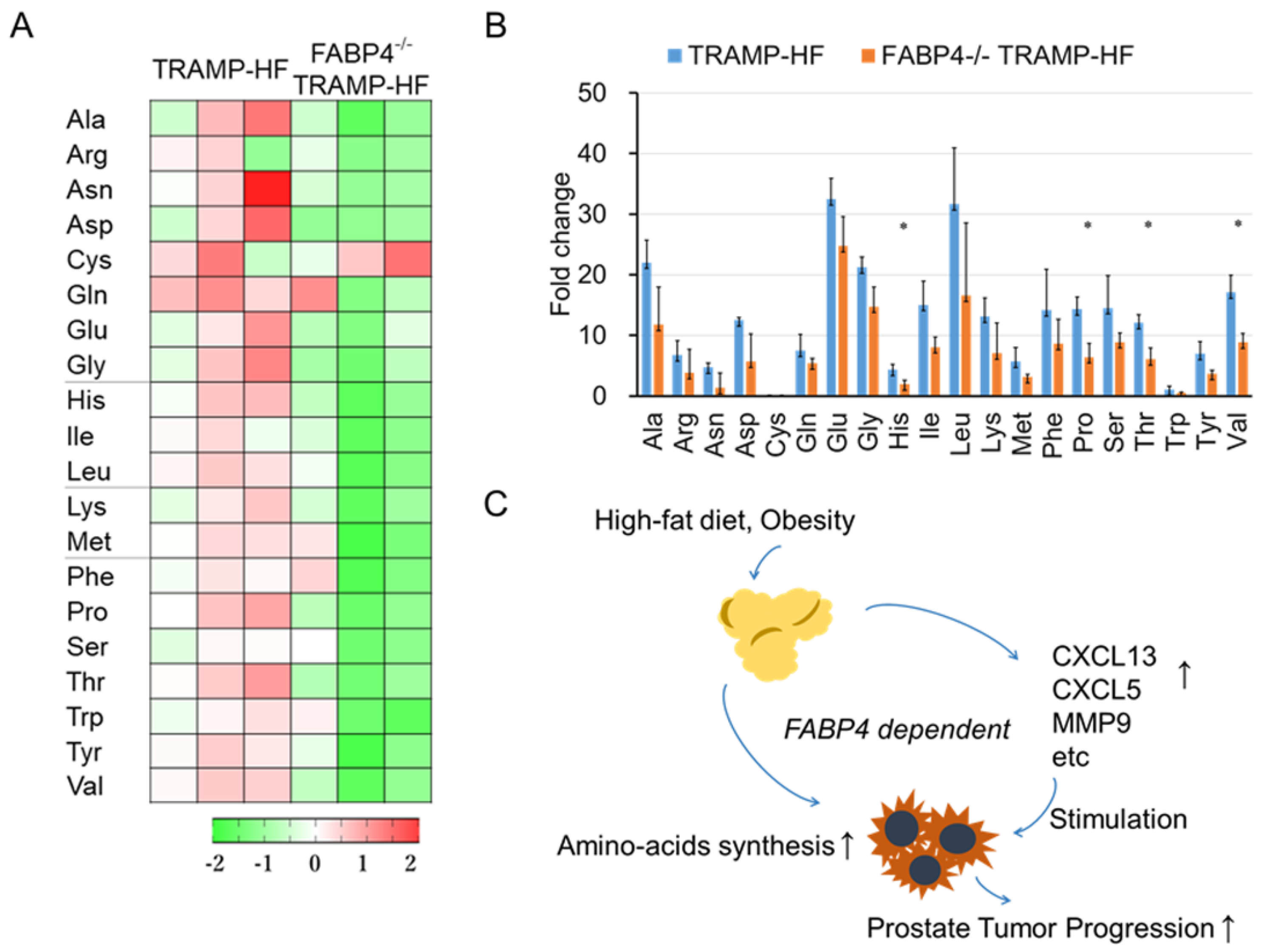 2.6. Loss of FABP4 Decreased Amino Acid Synthesis in TRAMP Mice