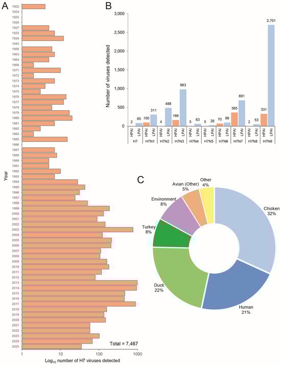 2.1. Genomic Analysis of Global H7 Viruses Indicates a Pathogenic Shift from a Domestic Strain of H7 LPAI