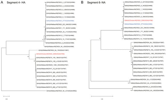 | 6—NA | A/Mallard/NZ/W24_2774/2024 (H4N6) | 98.8 | PX271001.1 |