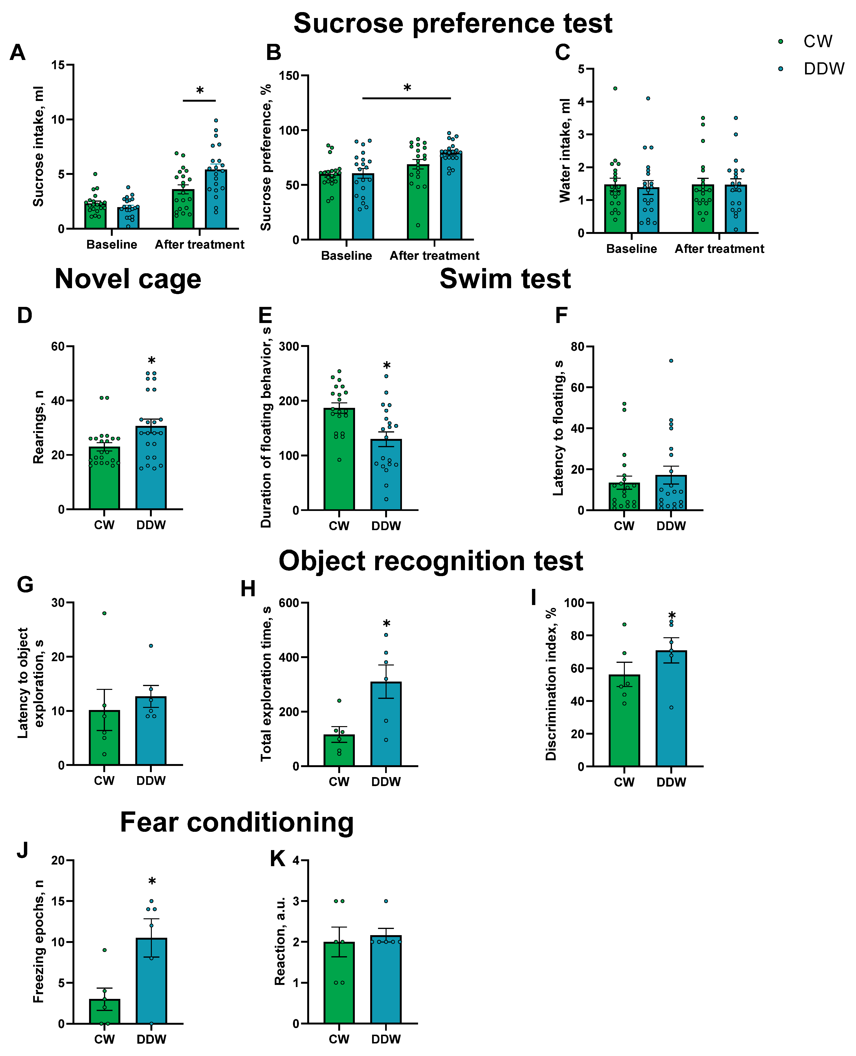 2.3. Effects of DDW Exposure on Parameters of Emotionality