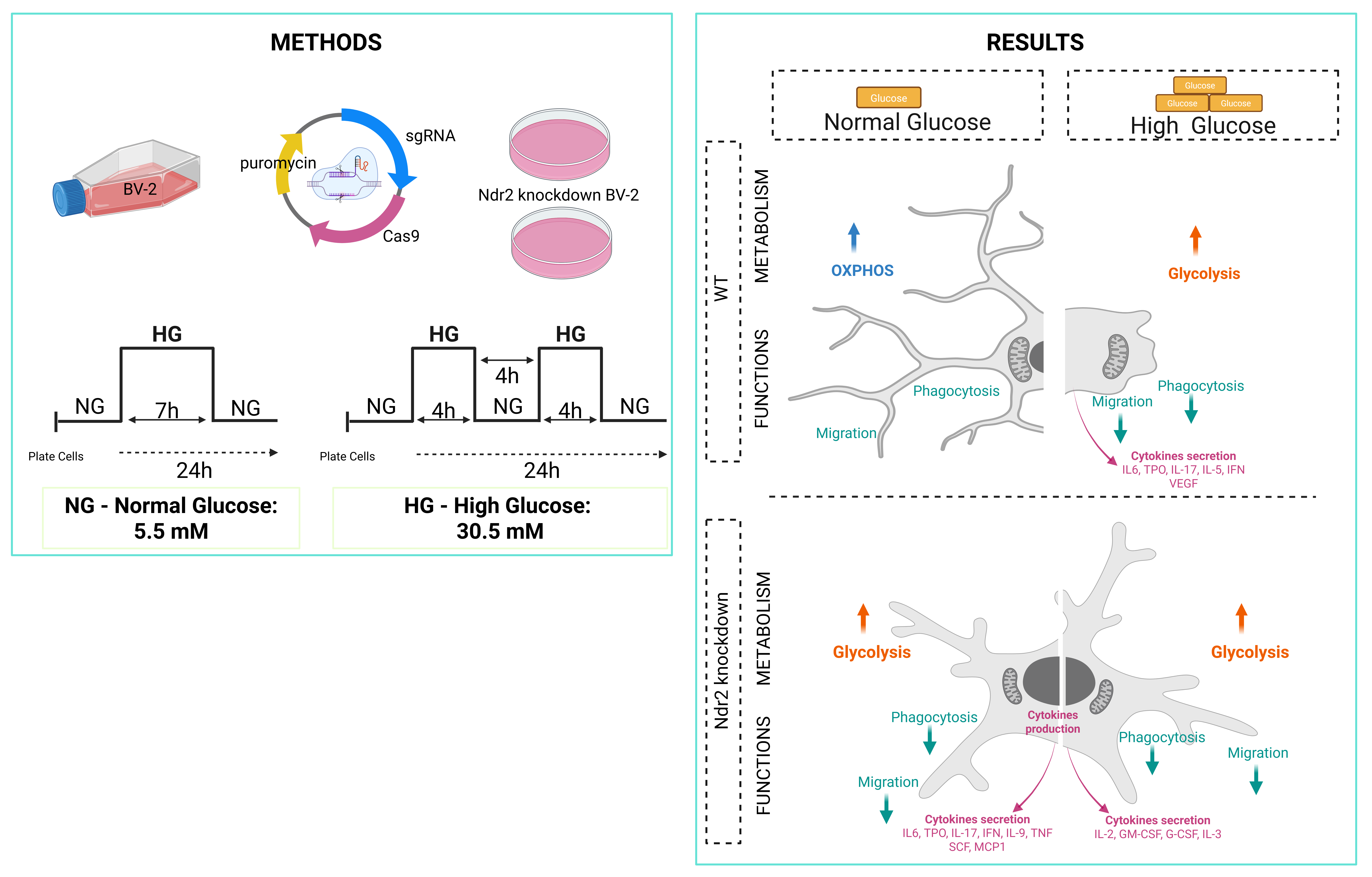 Fazendeiro, B.; Machado, I.; Rolo, A.; Rodrigues Santos, P.; Ambrósio, A.F.; Santos, P.F.; Léger, H. NDR2 Kinase Regulates Microglial Metabolic Adaptation and Inflammatory Response: Critical Role in Glucose-Dependent Functional Plasticity. Int. J. Mol. Sci. 2025, 26, 10630. https://doi.org/10.3390/ijms262110630