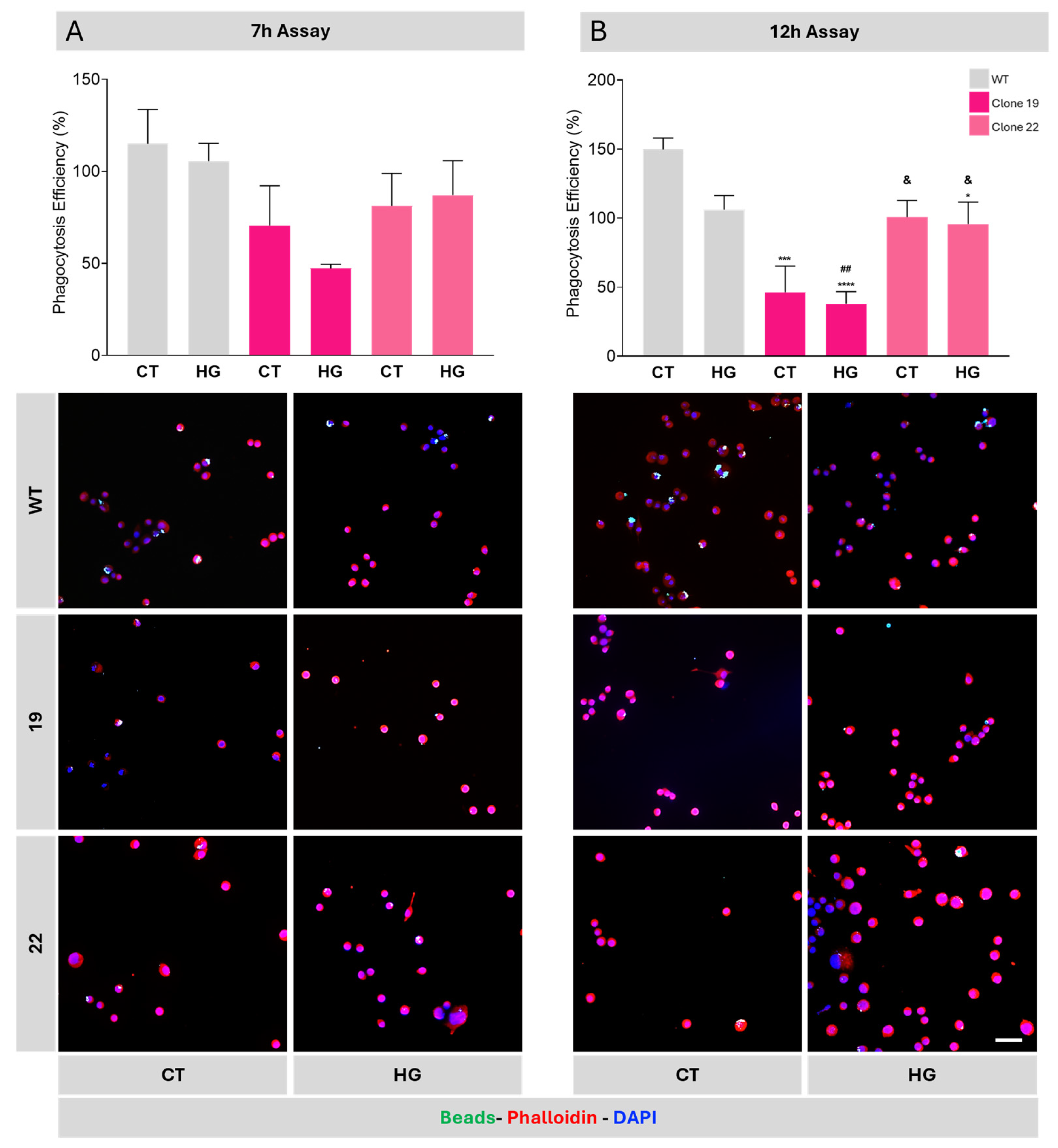 2.6. High Glucose and Ndr2 Downregulation Affect Phagocytic Efficiency