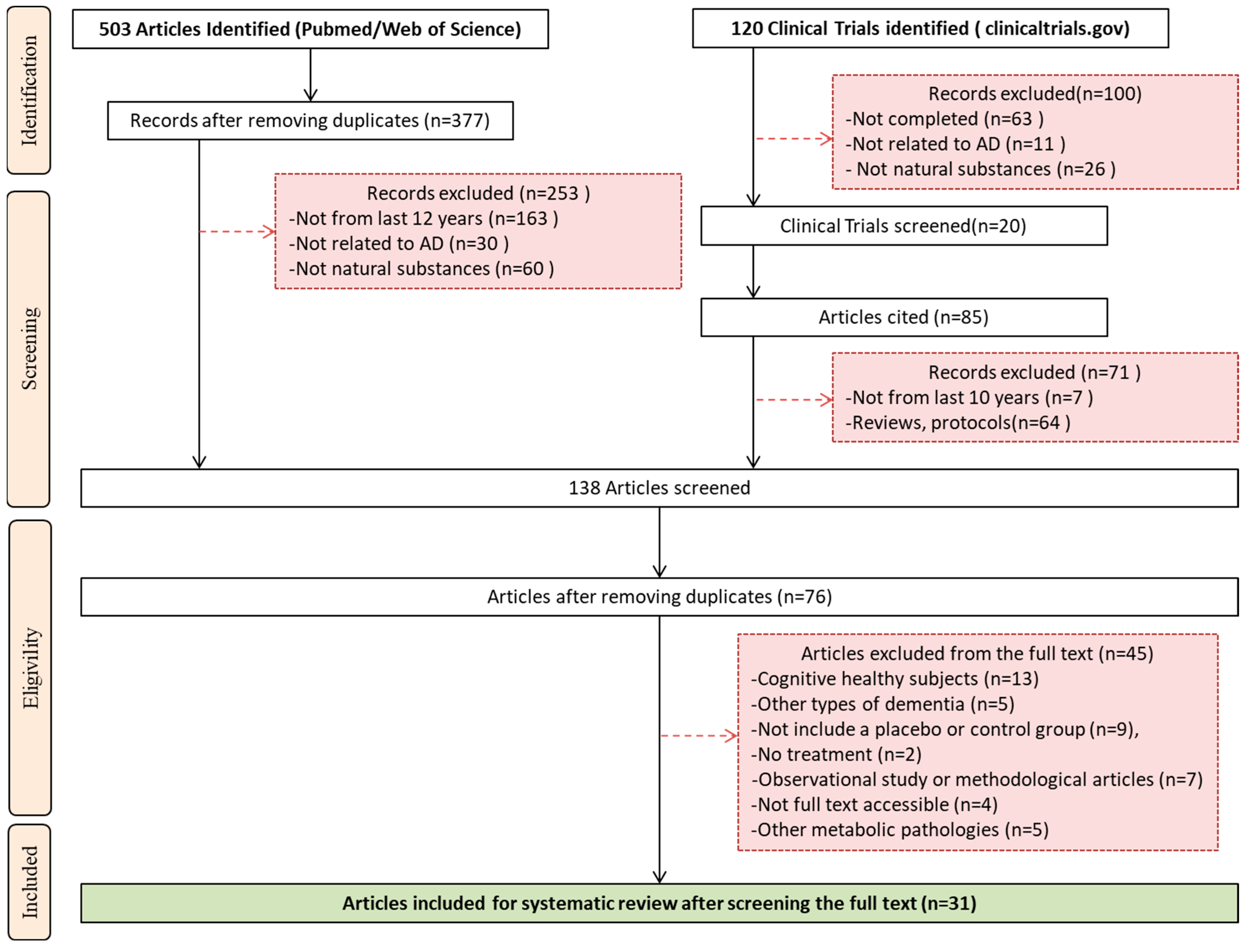 APA StyleBayo Jimenez, M. T., Rivas-García, L., Sánchez-González, C., Grosso, G., Lipari, V., Vera-Ramírez, L., Battino, M., Giampieri, F., Quiles, J. L., & Forbes-Hernández, T. Y. (2025). Natural Products in Alzheimer’s Disease: A Systematic Review of Clinical Trials and Underlying Molecular Mechanisms. International Journal of Molecular Sciences, 26(21), 10631. https://doi.org/10.3390/ijms262110631
