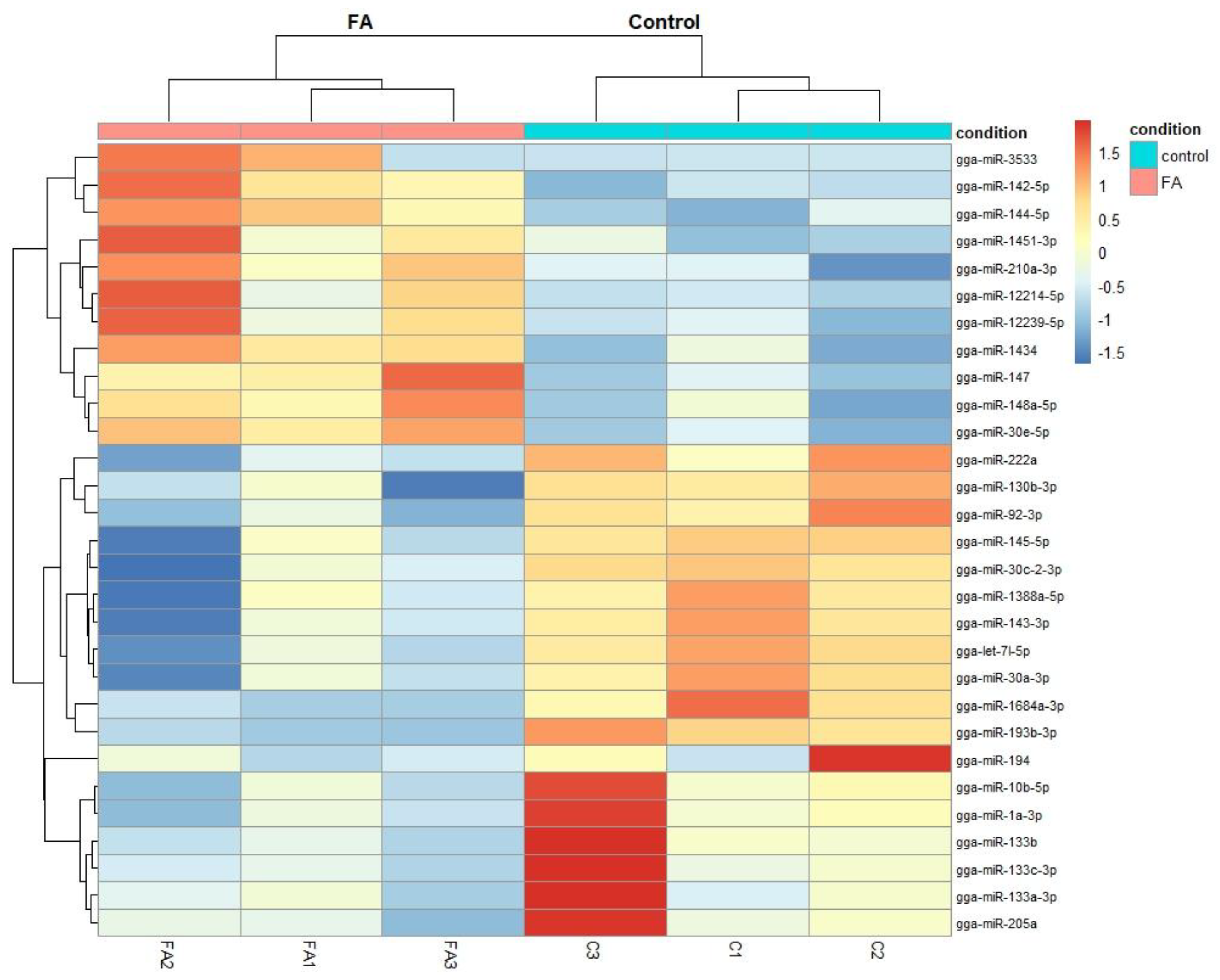2.2. Differentially Expressed miRNA in the Chicken Between FA and Control