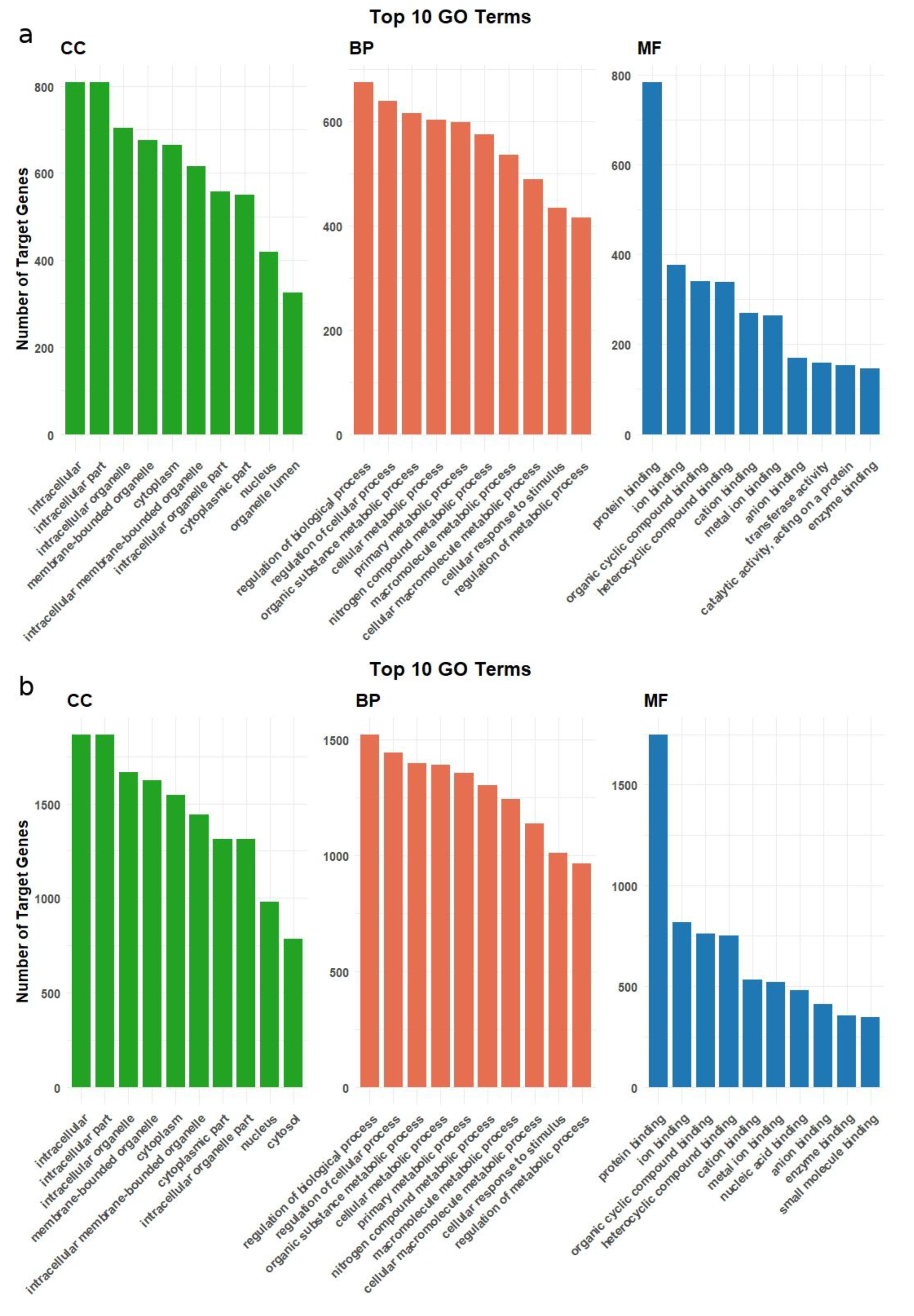 2.3. Functional Enrichment and Pathway Analysis of Target Genes of Differentially Expressed miRNAs