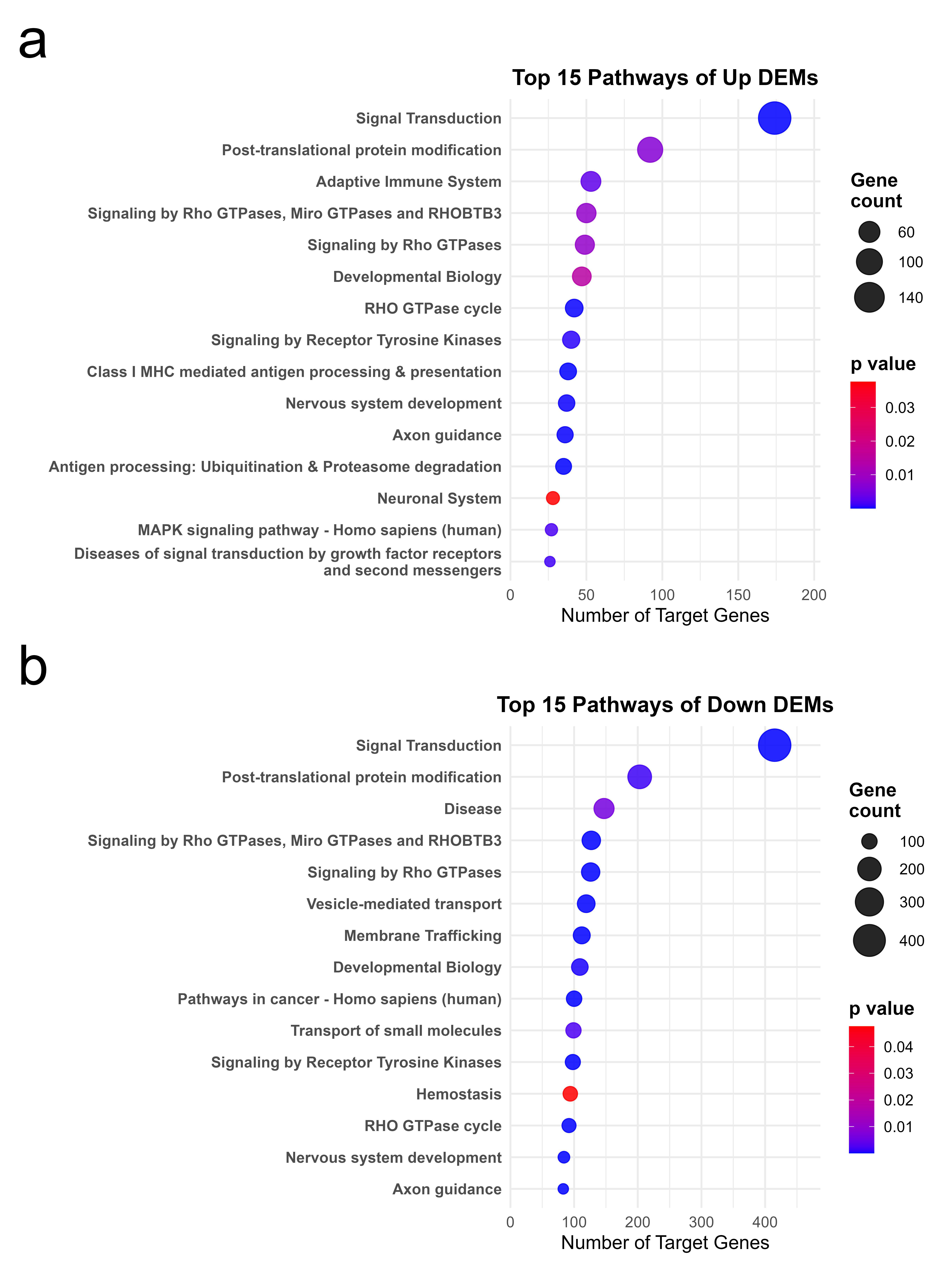 4.7. Target Gene Prediction and Functional Analysis of DEMs