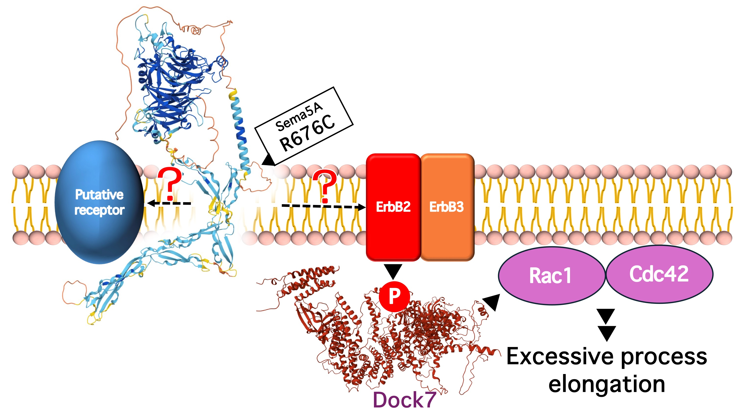 Takahashi, M.; Yako, H.; Suzuki, A.; Isa, R.; Miyamoto, Y.; Yamauchi, J. The ErbB2–Dock7 Signaling Axis Mediates Excessive Cell Morphogenesis Induced by Autism Spectrum Disorder- and Intellectual Disability-Associated Sema5A p.Arg676Cys. Int. J. Mol. Sci. 2025, 26, 10656. https://doi.org/10.3390/ijms262110656