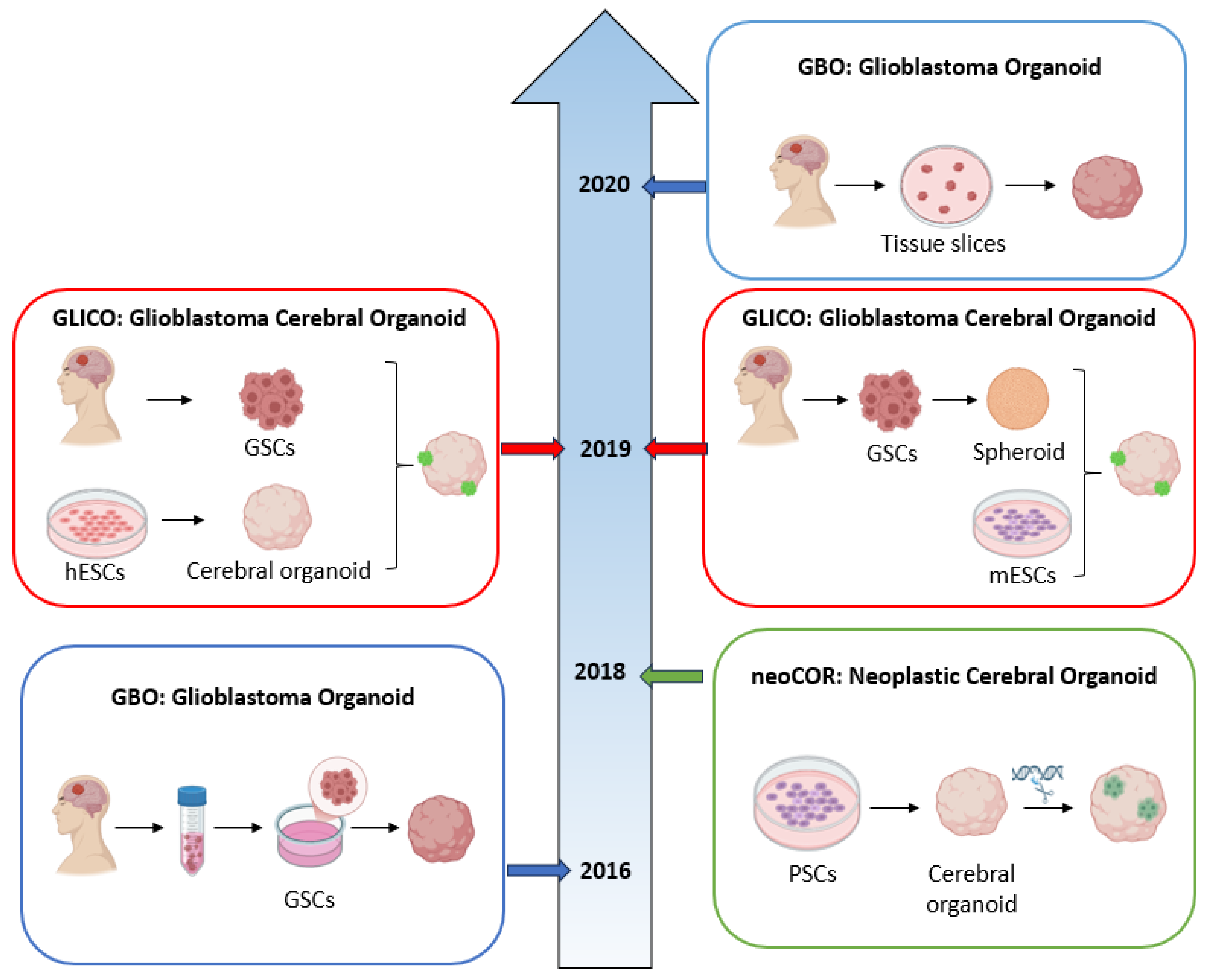 | GLICO | Human GBM spheroids co-cultured with mouse ESC GSCs co-cultured with human-ESC derived cerebral organoid |