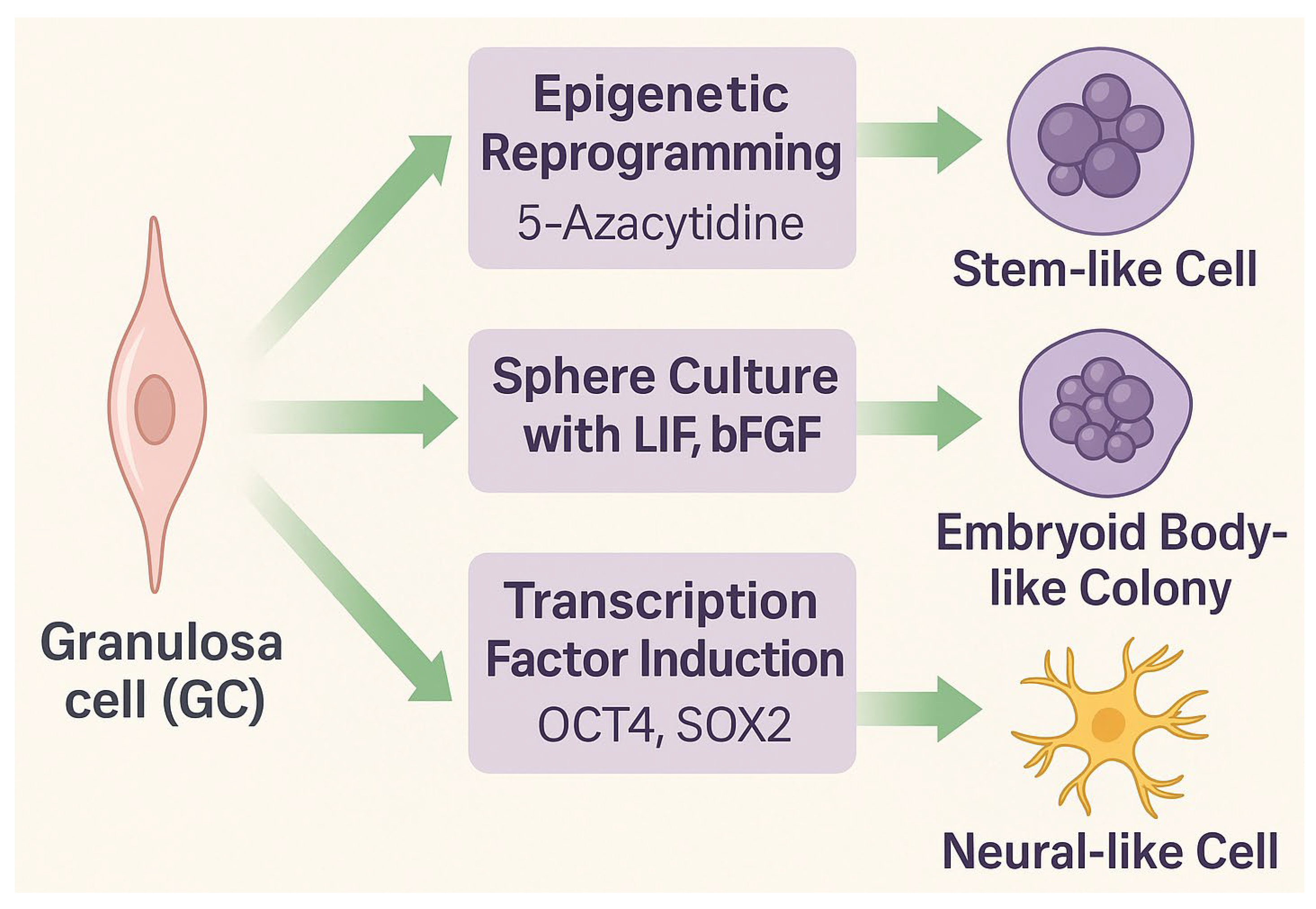 - Dereń, J. Epigenetic Conversion of Granulosa Cells Isolated from Porcine Ovarian Follicles into Nervous System Cells. Master’s Thesis, Jagiellonian University, Kraków, Poland, 2022. Available online: https://ruj.uj.edu.pl/xmlui/handle/item/294409 (accessed on 10 September 2025).