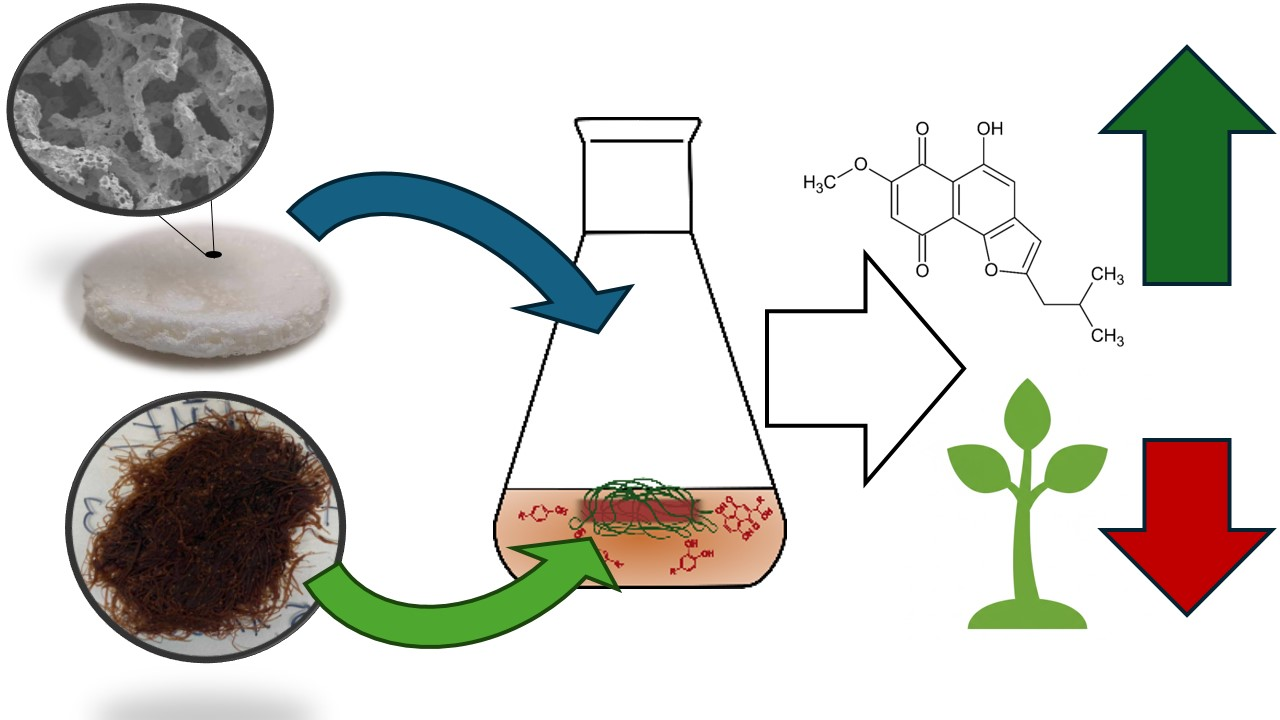- Immobilization: We hypothesized that immobilization would play a supportive role by improving mass transfer and maintaining a healthy, metabolically active biomass capable of efficiently responding to the elicitation stimulus.