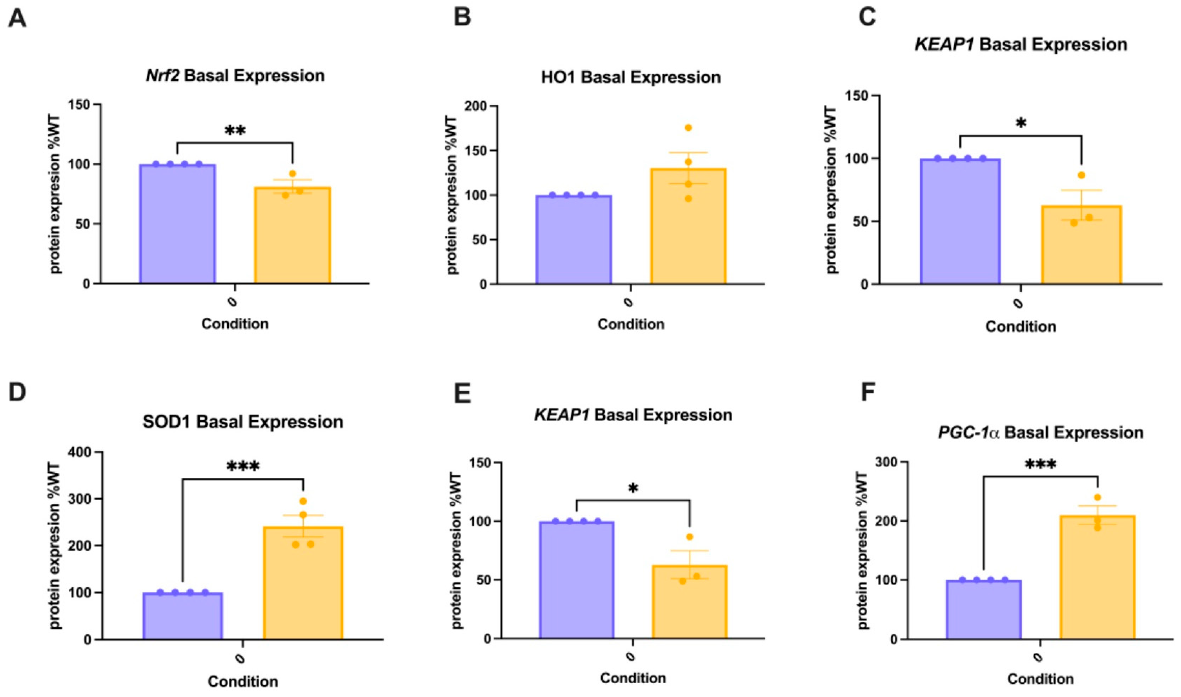 2.6. Mutant HD Regulates Basal Protein Levels of Oxidative Stress and Mitochondrial Dynamics Signaling Proteins