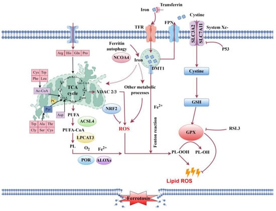 - Jiang, L.; Kon, N.; Li, T.; Wang, S.J.; Su, T.; Hibshoosh, H.; Baer, R.; Gu, W. Ferroptosis as a p53-mediated activity during tumour suppression. Nature 2015, 520, 57–62. [Google Scholar] [CrossRef]