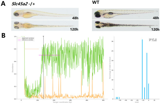 4.5. CRISPR/Fp2Cas9 Targeted Editing of Zebrafish slc45a2 and Phenotypic Analysis