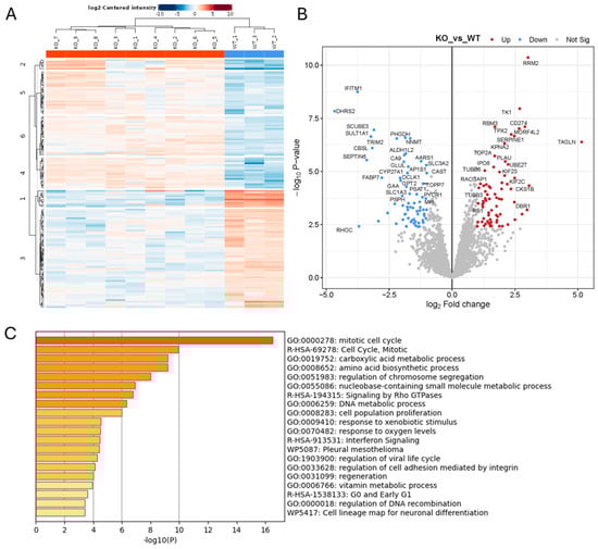 Protein list pathway analysis was performed with Metascape (https://metascape.org, accessed on 8 May 2025), using significant, ≥2-fold changes in triplicate samples. Cytoscape (version 3.10.1; https://cytoscape.org) was used to generate network plots using a subset of enriched terms (no more than 15 terms per cluster and no more than 250 terms in total), where each node represents an enriched term and is coloured by its cluster ID, and terms with a similarity of >0.3 are connected by edges.