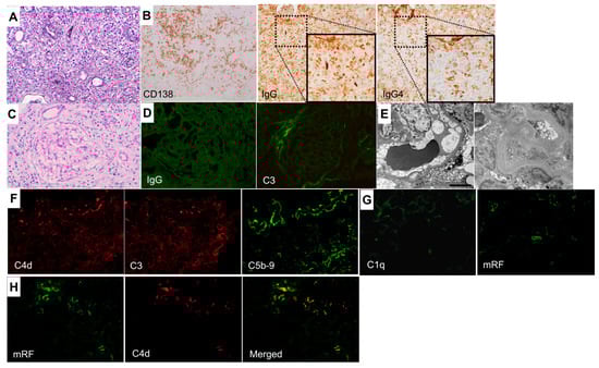 - Saeki, T.; Nagasawa, T.; Ubara, Y.; Taniguchi, Y.; Yanagita, M.; Nishi, S.; Nagata, M.; Yamaguchi, Y.; Saito, T.; Nakashima, H.; et al. Comparison of clinicopathological features between patients with and without hypocomplementemia in IgG4-related kidney disease. Nephrol. Dial. Transplant. 2023, 38, 1053–1056. [Google Scholar] [CrossRef] [PubMed]
