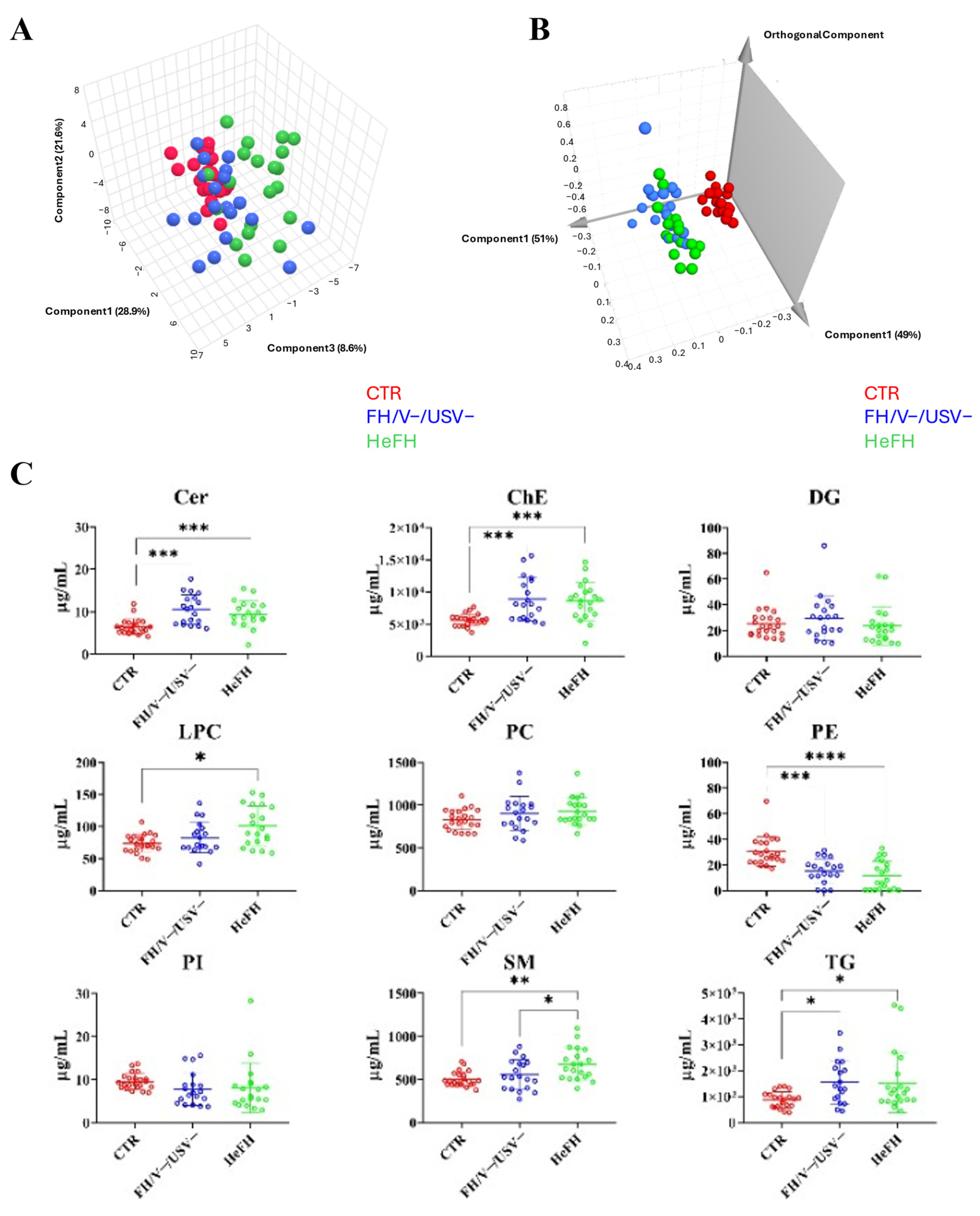 2.2. Distinct Lipidomic Signatures in FH Groups and Healthy Controls