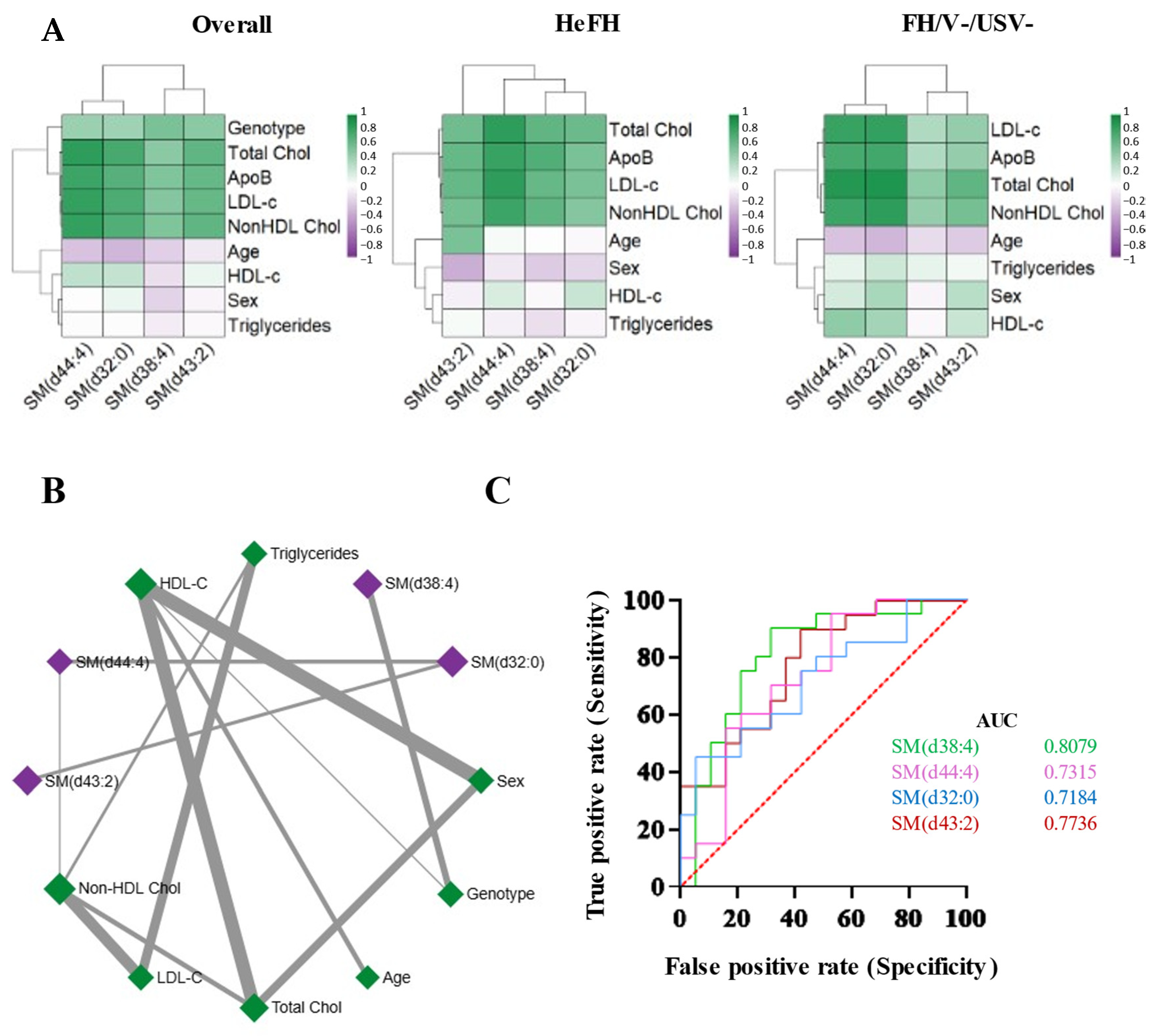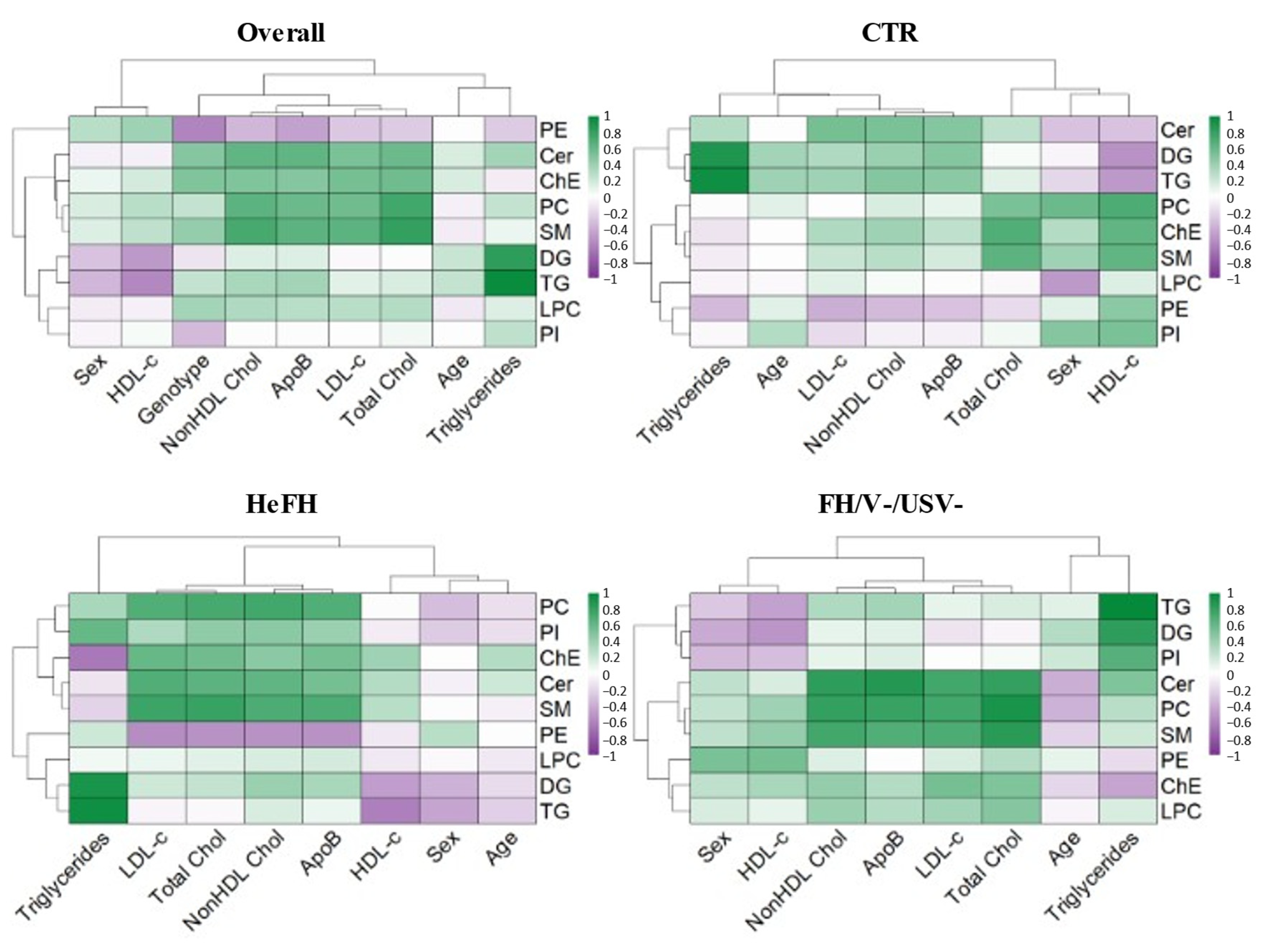 2.5. Correlation of Lipidomic Profile with Clinical and Biochemical Data in FH Groups