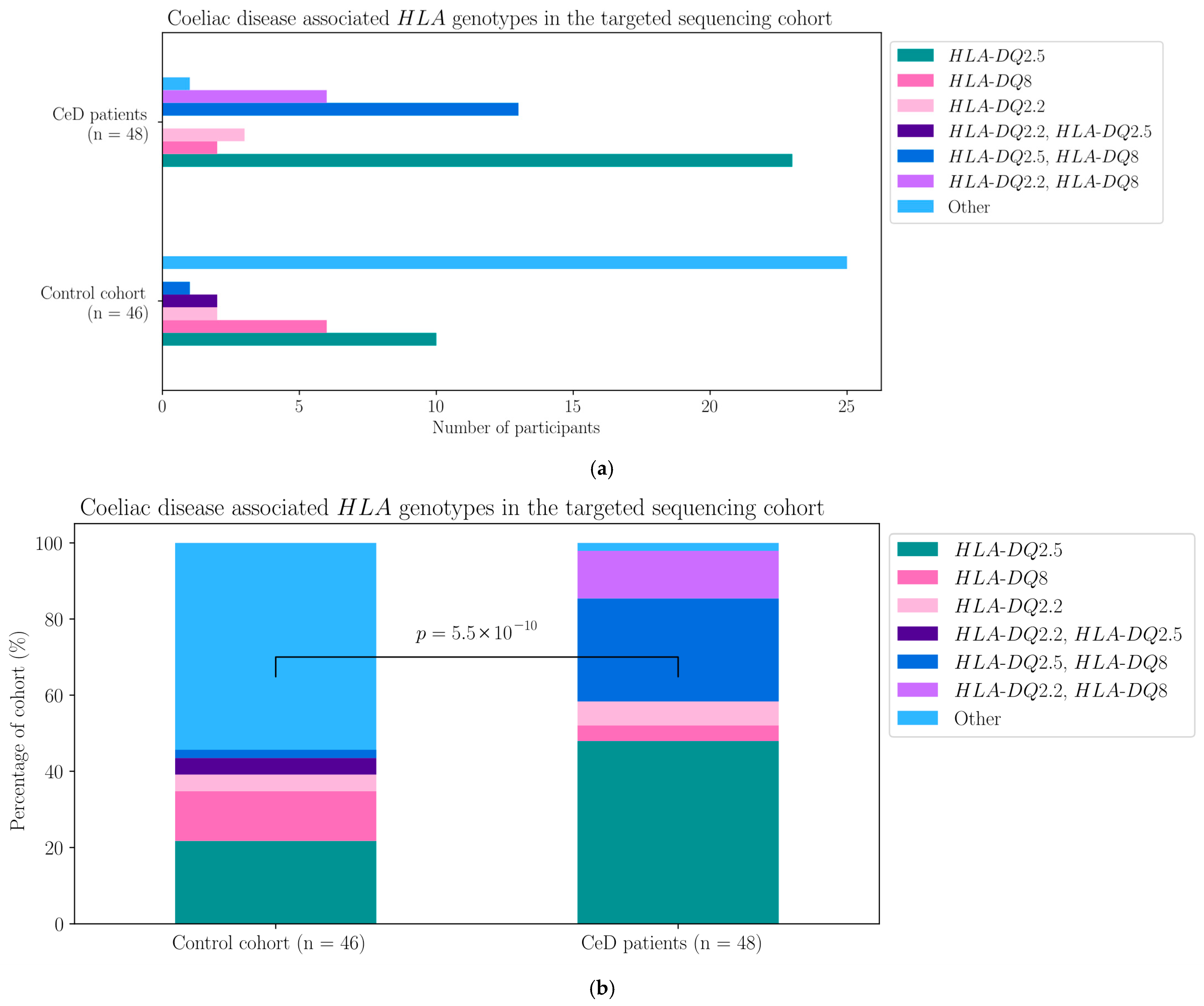 2.1.1. Risk-Associated HLA Genotypes Were Significantly More Frequent in CeD Patients